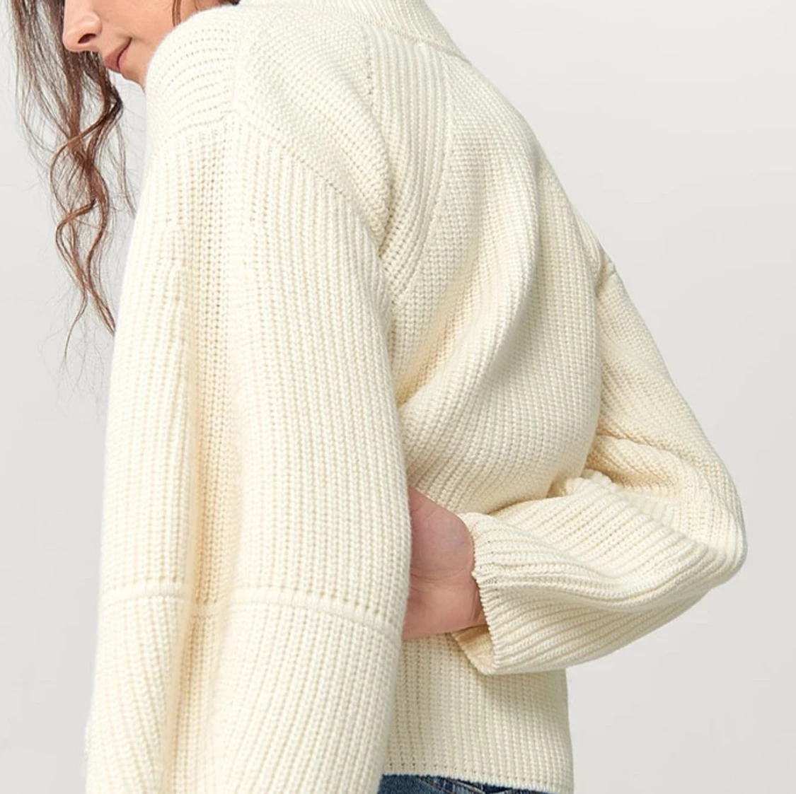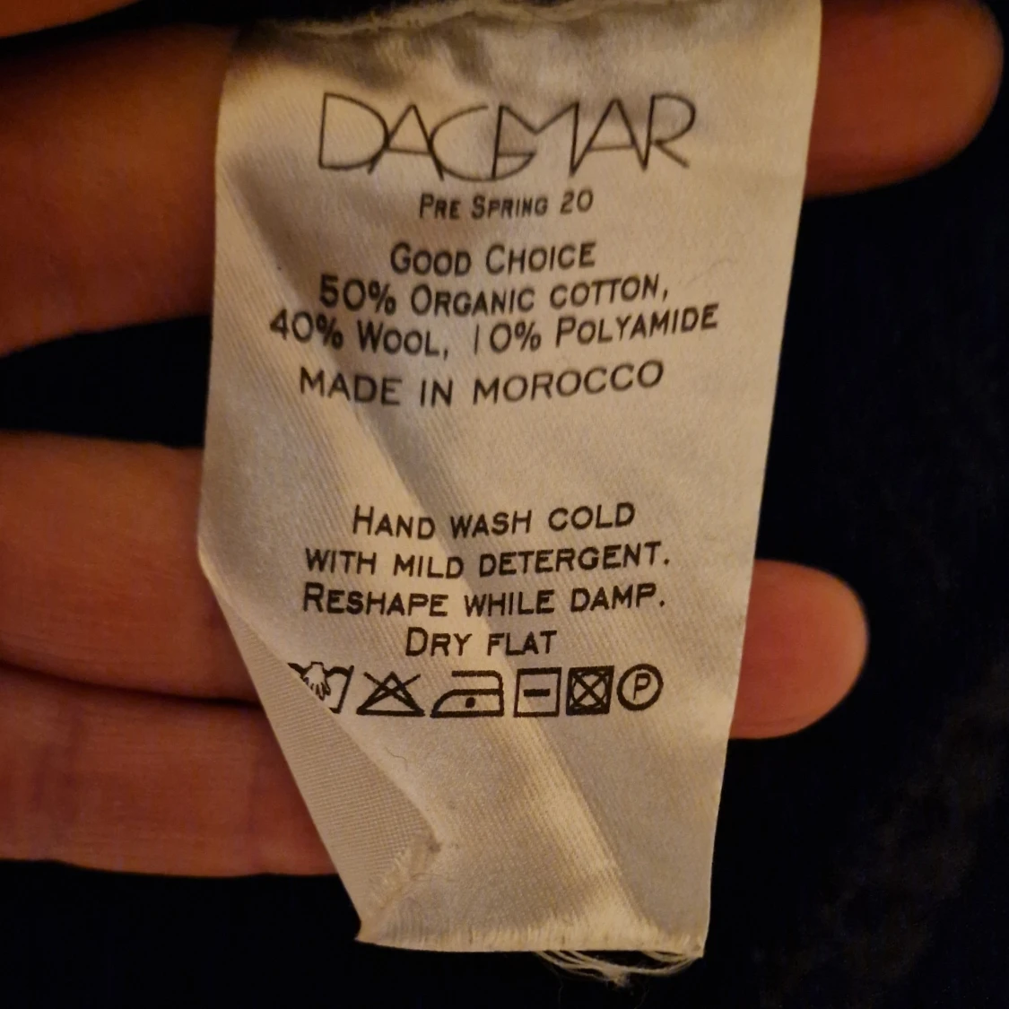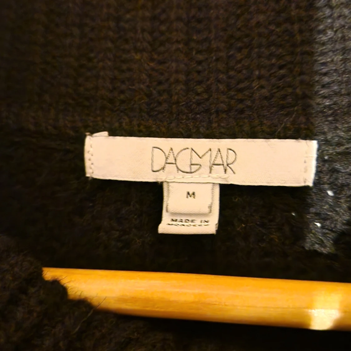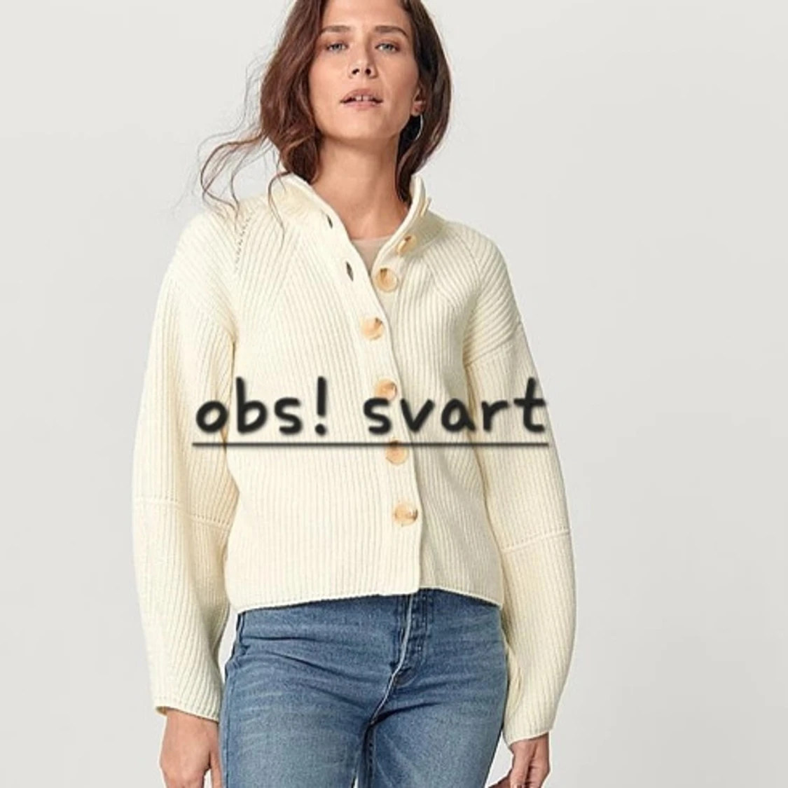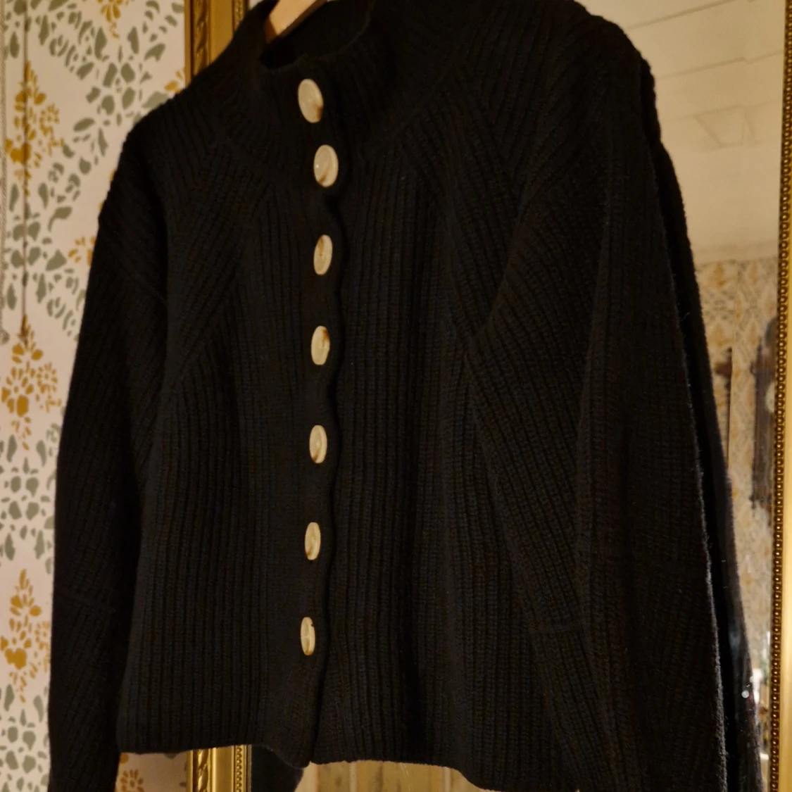 Säljer en snygg svart stickad kofta från Dagmar. Modellen heter cardigan morina, storlek M. Figurnära kortare modell med stora knappar, hög hals, överdimensionerade ärmar med nerhasad axelsöm. Nypris 2995kr. Obs tröjan jag säljer är svart, bilden på den vita koftan är för att visa modellen. Fint skick utan anmärkningar förutom möjlighet lite ytludd.