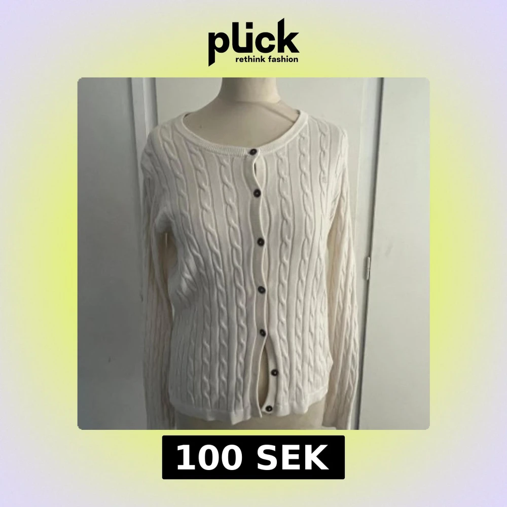 Säljer en klassisk vit kabelstickad kofta från Park Lane med rund halsringning och knappar framtill. Koftan har långa ärmar och diskret broderad logga på bröstet. Perfekt för lager-på-lager och enkel att matcha med olika outfits.💕