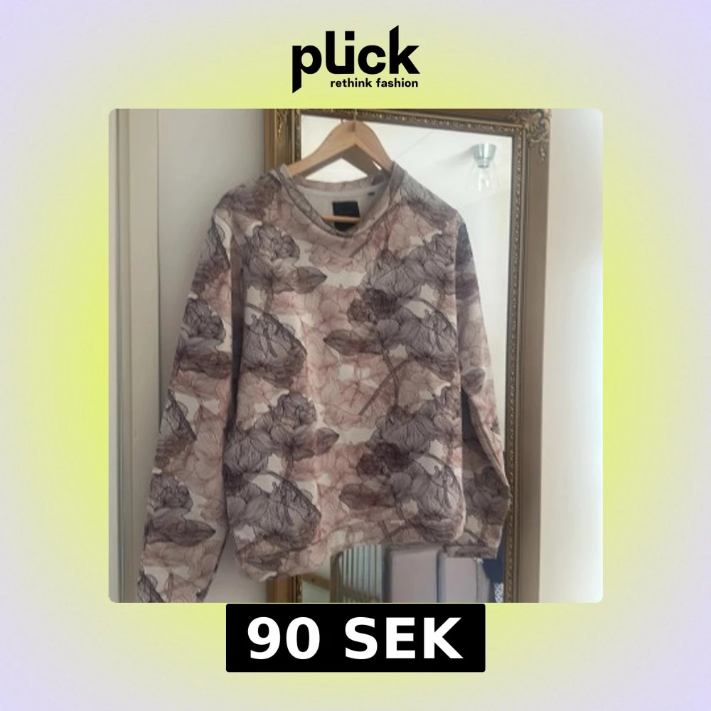 Säljer en snygg långärmad tröja från Saints and Mortals i storlek medium. Tröjan har ett blommigt mönster i beige och bruna toner, perfekt för dig som gillar en unik och stilren look.