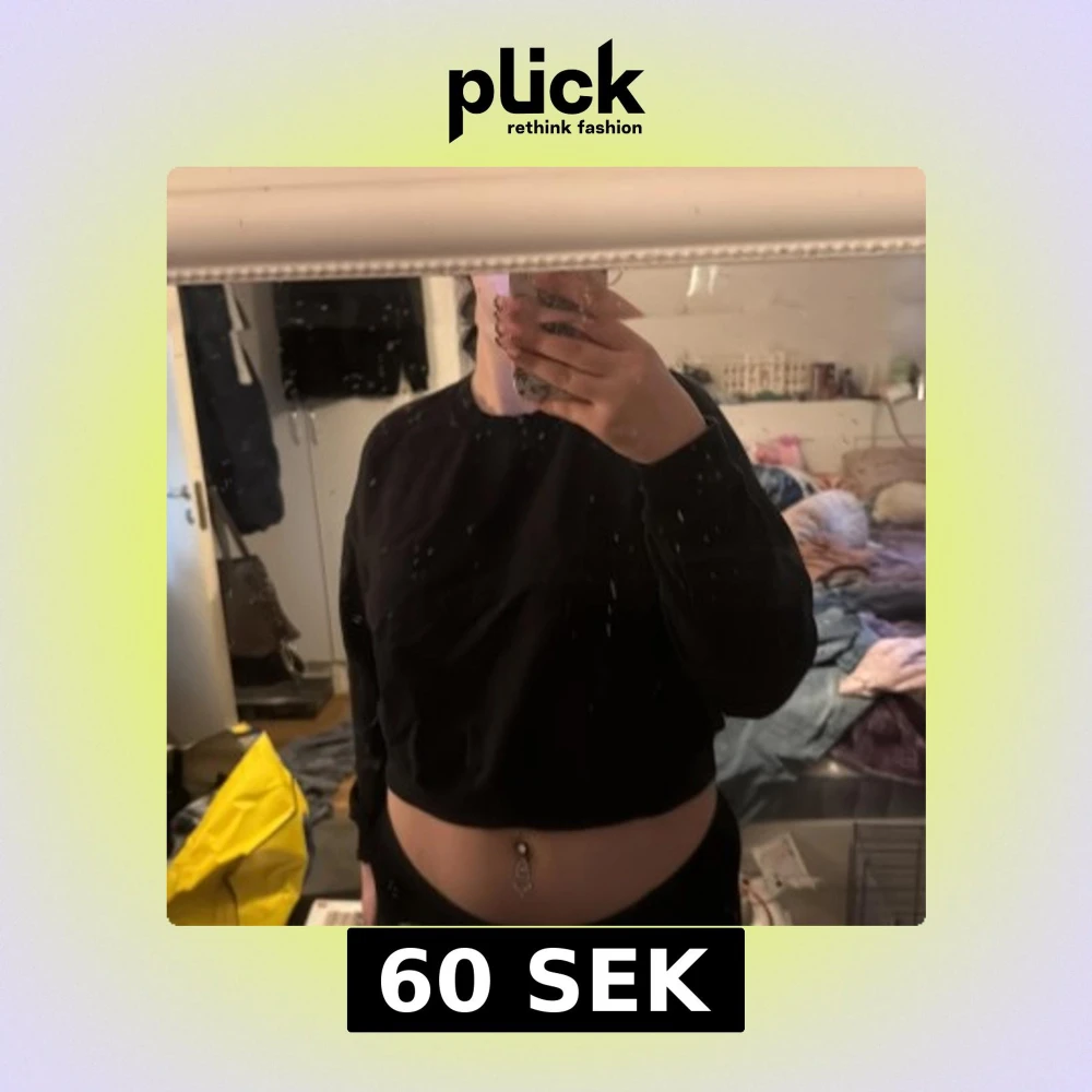 Säljer en svart croppad sweatshirt från 157. Tröjan har rund halsringning och långa ärmar med ribbade muddar. Enkel och stilren modell som passar perfekt till vardagslooken.