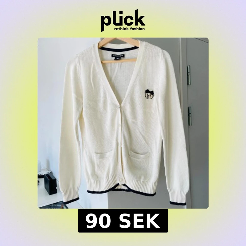 Säljer en söt vit kofta från Teenie Weenie med ett litet broderat björnmärke på bröstet. Koftan har två fickor framtill, svarta detaljer vid kanterna och knäppning med knappar. Perfekt för lager-på-lager och enkel att matcha. Storlek 165/88A (M). 📏 Mått: • Axelbredd: 36 cm • Ärmlängd: 64 cm • Total längd: 62 cm 👕 Material: • 82,6 % bomull, 17,4 % akryl – mjuk och bekväm.