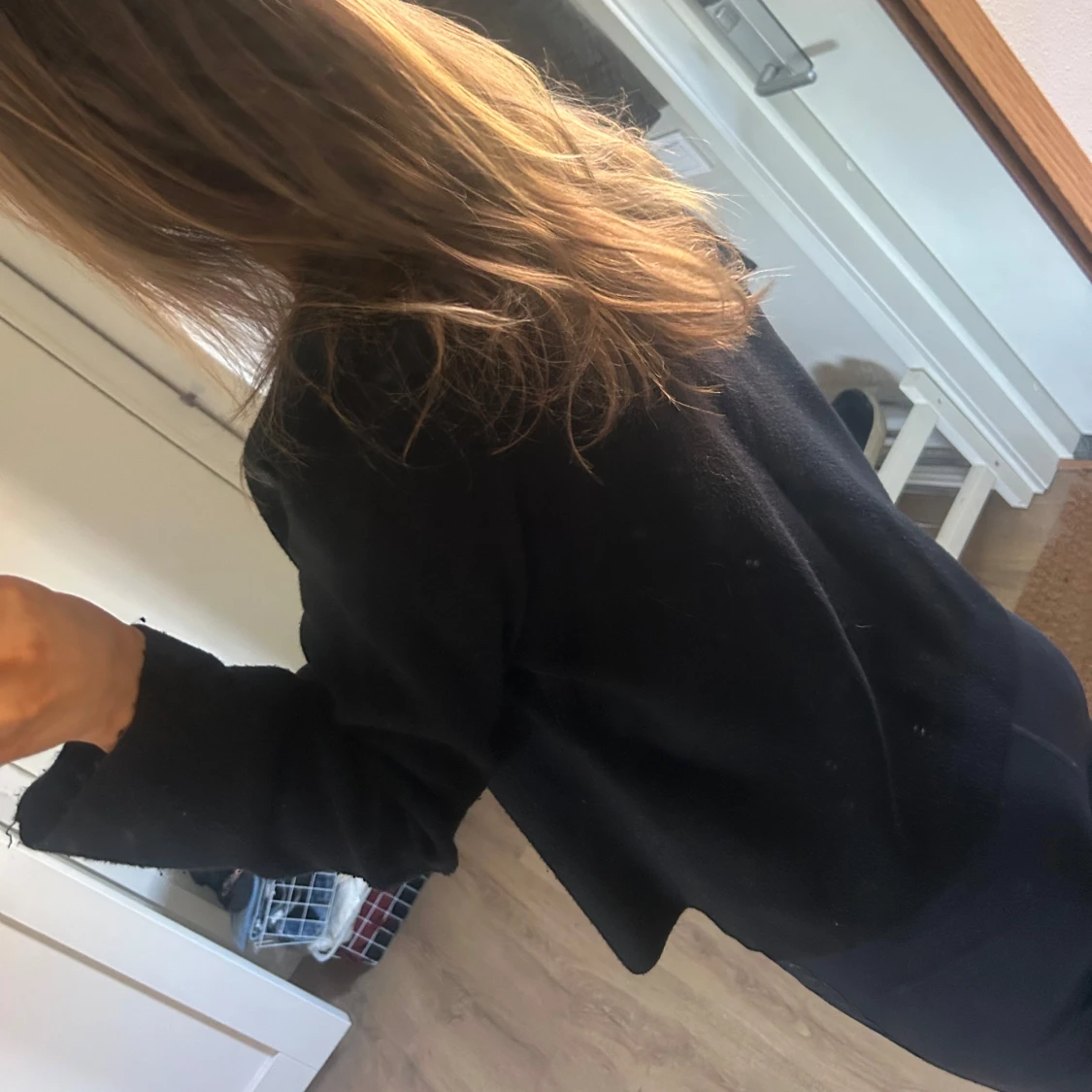 Mysig svart stickad tröja med lång ärm och lös passform. Tröjan har en enkel design utan synliga detaljer.