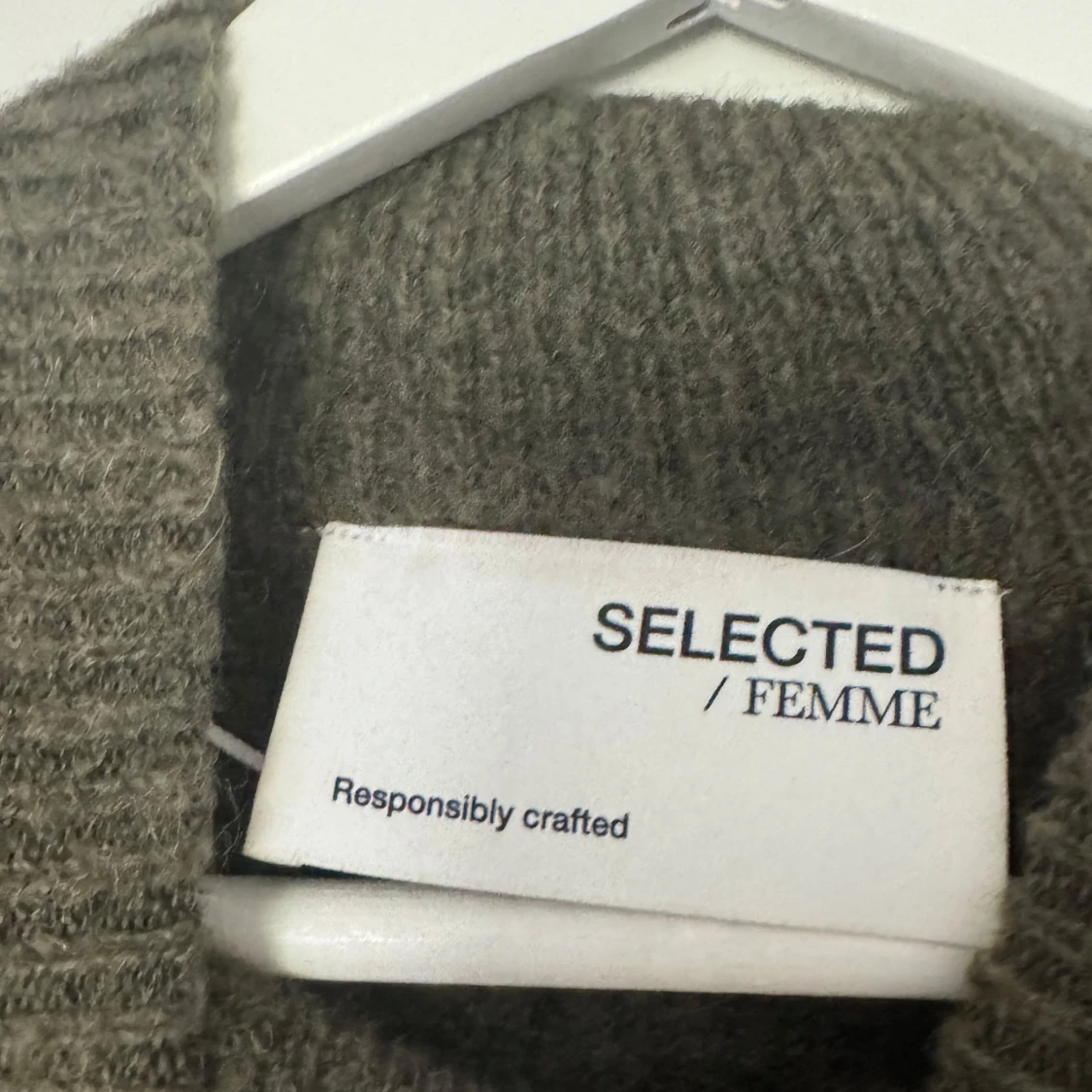 Mysig olivgrön stickad tröja från Selected Femme. Tröjan har en klassisk rund halsringning och långa ärmar. Perfekt för lager-på-lager och enkel att matcha med olika outfits.