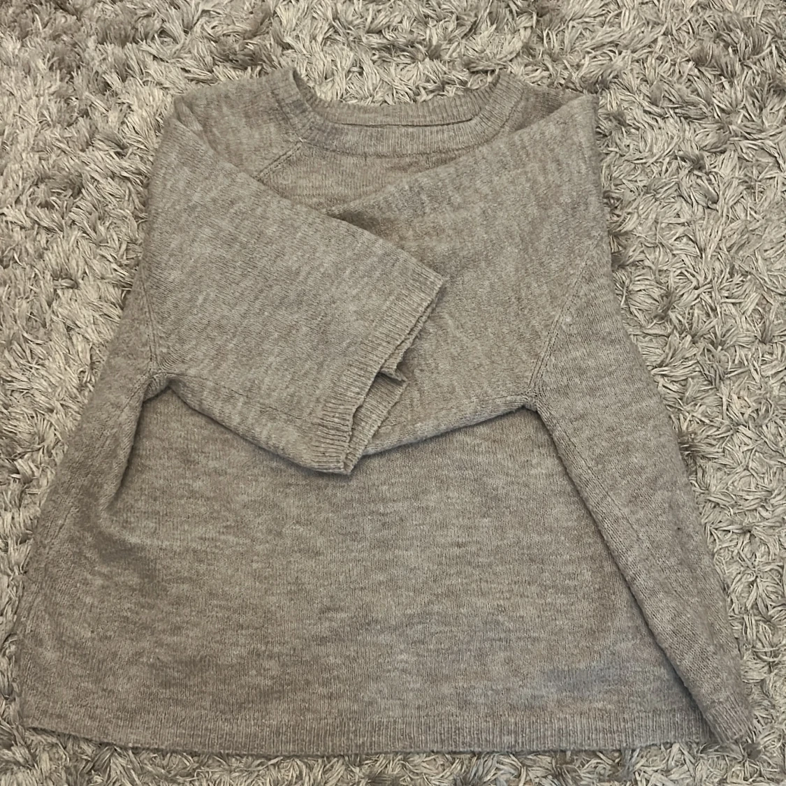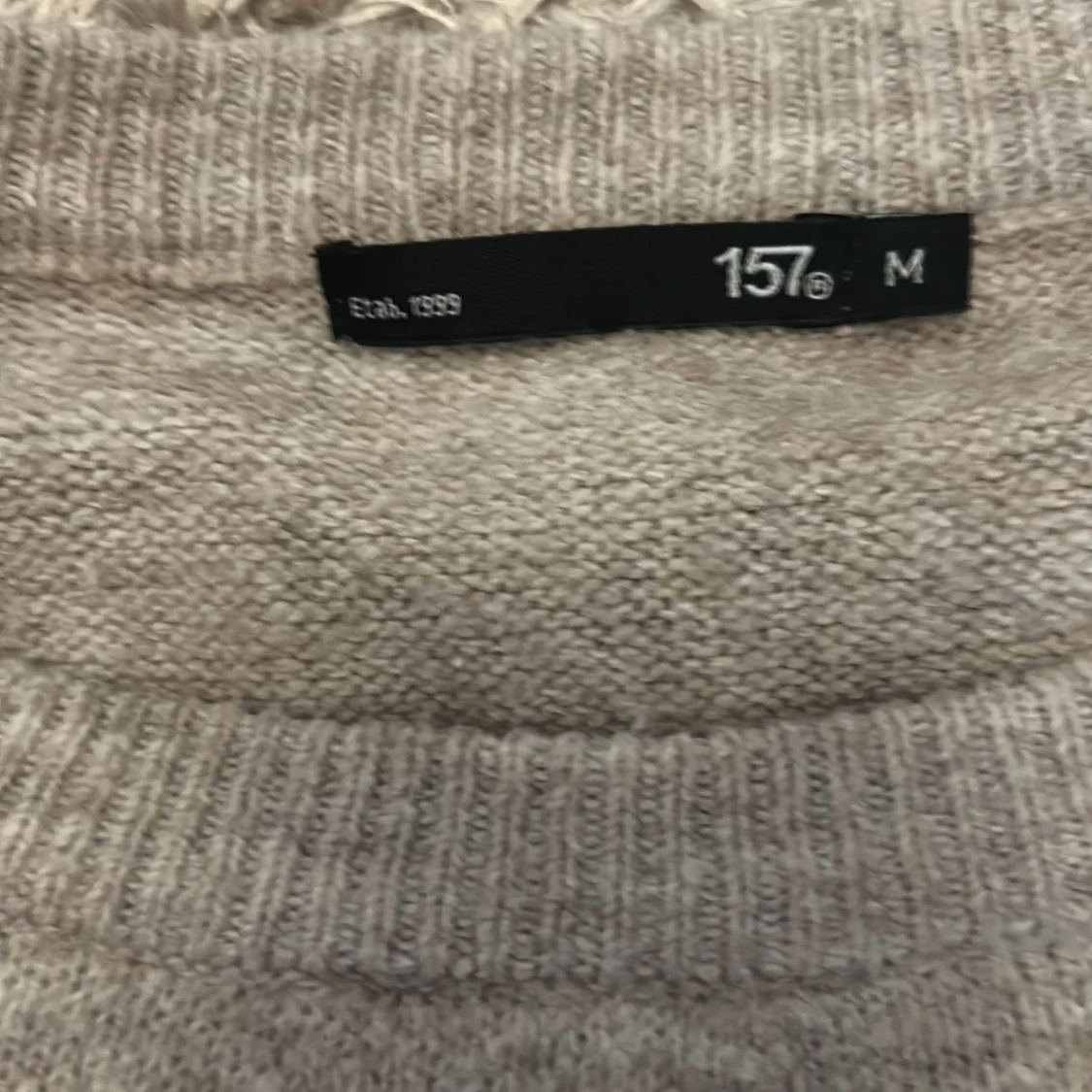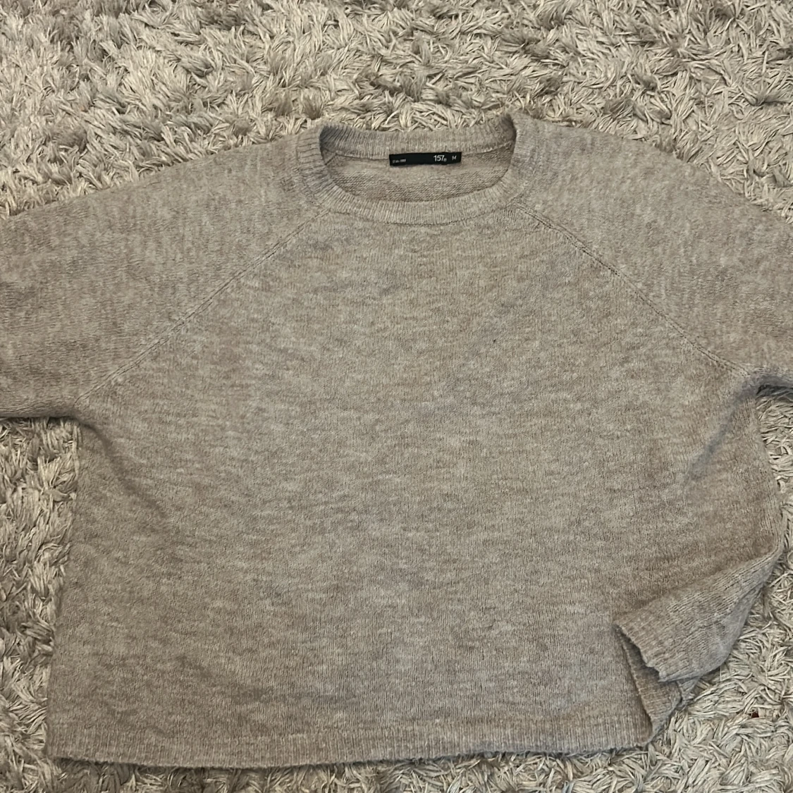 Mysig beige stickad tröja från 157 i storlek M. Tröjan har rund halsringning och långa ärmar, perfekt för lager-på-lager. Enkel och stilren design som passar till det mesta.