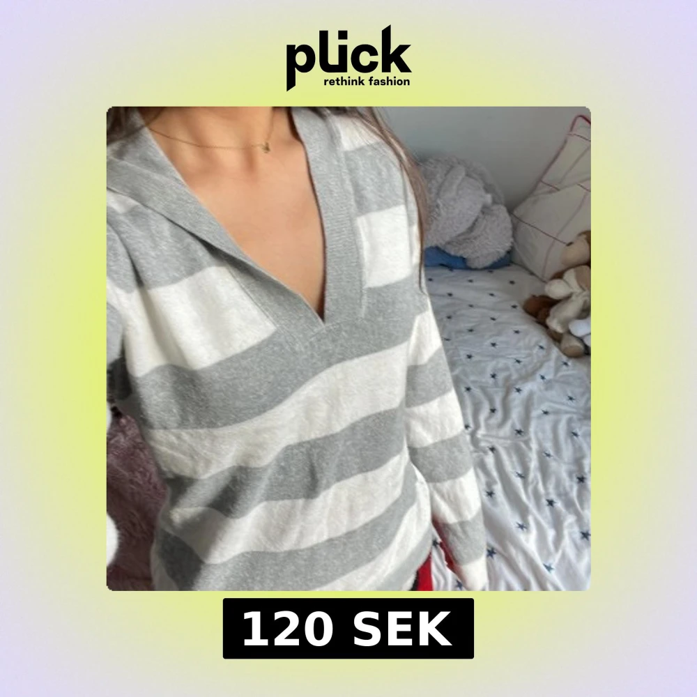 Säljer en mysig randig hoodie från GAP i grått och vitt. Tröjan har en v-ringning och är perfekt för en avslappnad stil. Den är långärmad och har en bekväm passform.