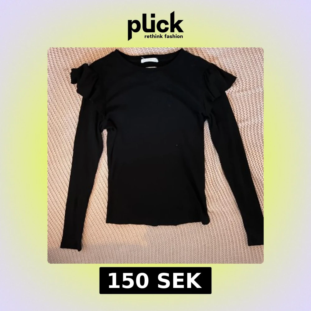 Säljer en svart långärmad topp från Reserved. Toppen har volangdetaljer på axlarna som ger en snygg touch. Mjuk och stretchig i materialet, perfekt till många olika outfits.