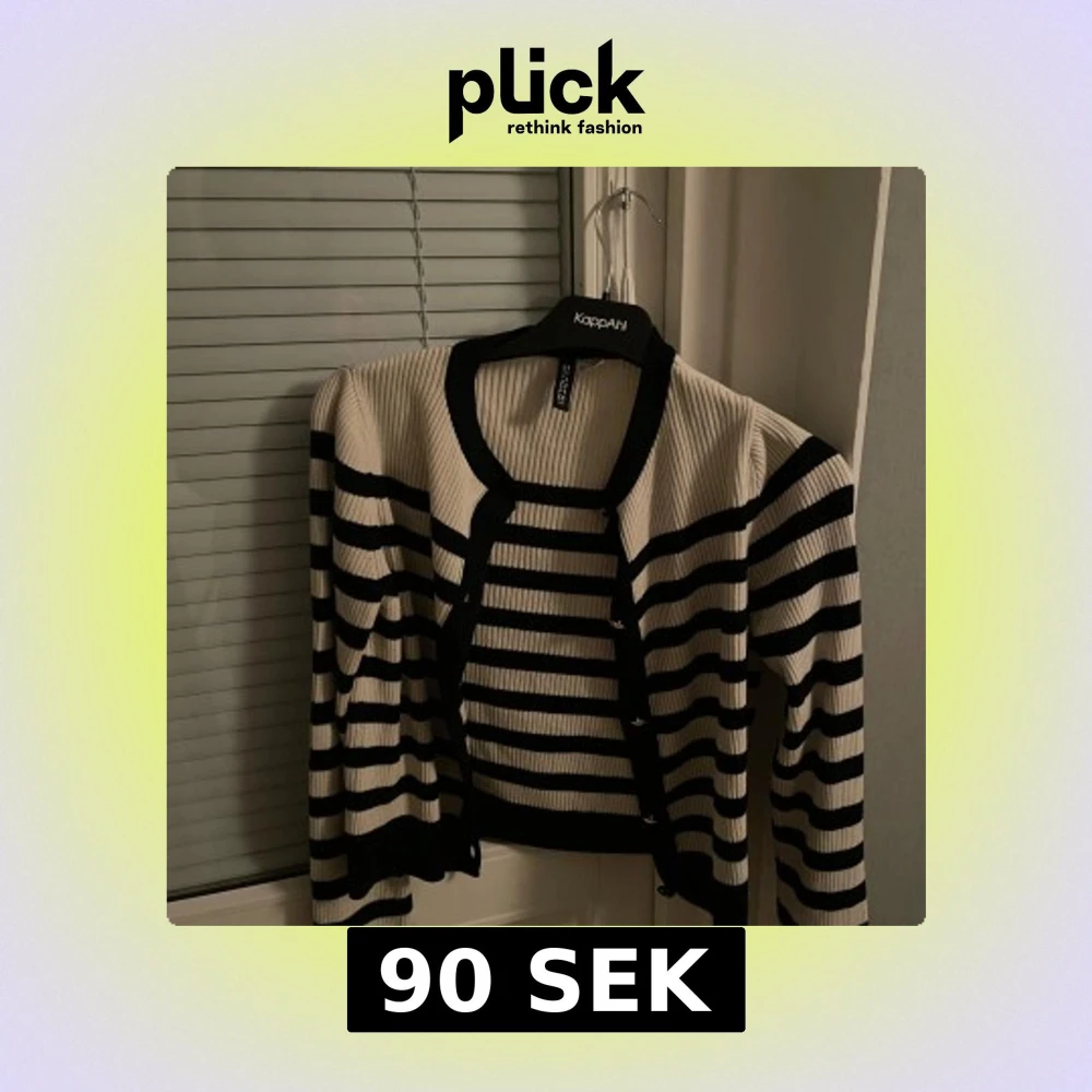 Säljer en snygg randig kofta från H&M Divided i svart och vit. Koftan har långa ärmar och en öppen design utan knappar. Perfekt för lager-på-lager-stil och passar till många olika outfits.
