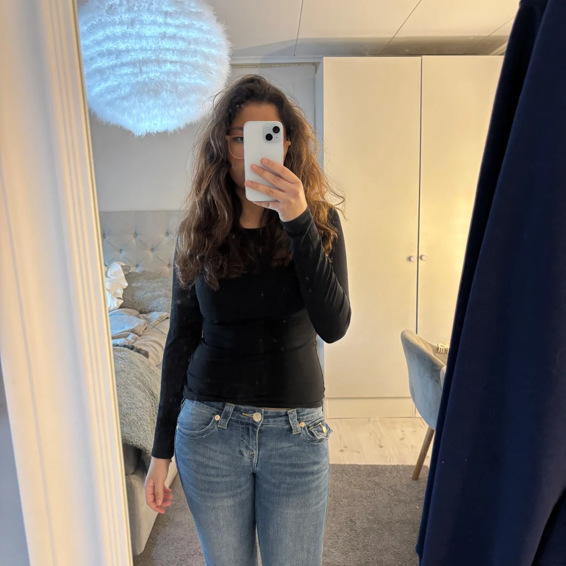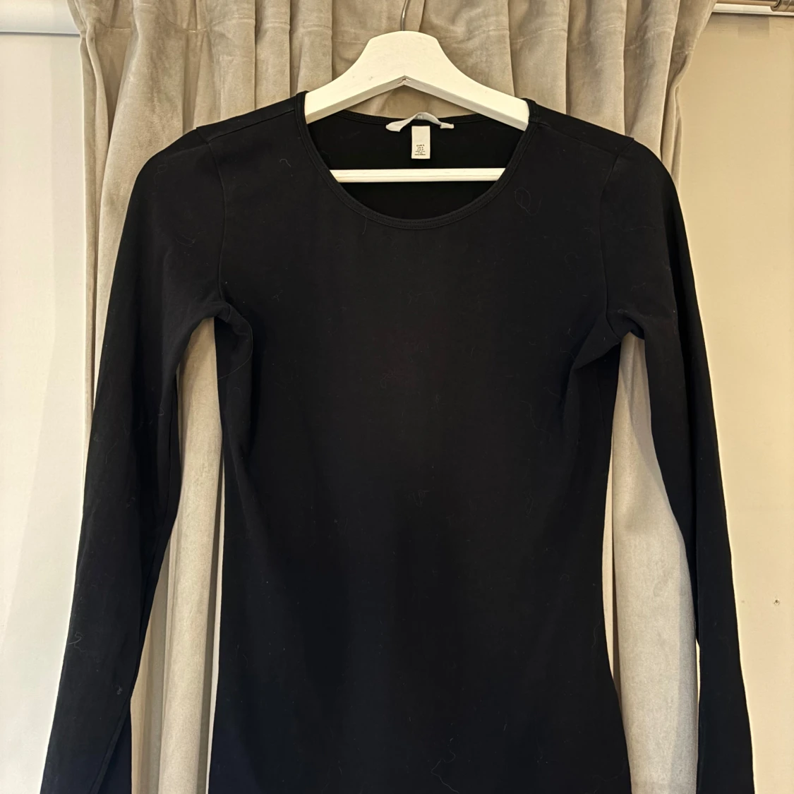Säljer en stilren svart långärmad topp med rund hals. Perfekt för lager-på-lager eller att bära som den är. Enkel och mångsidig design som passar till det mesta. 🖤