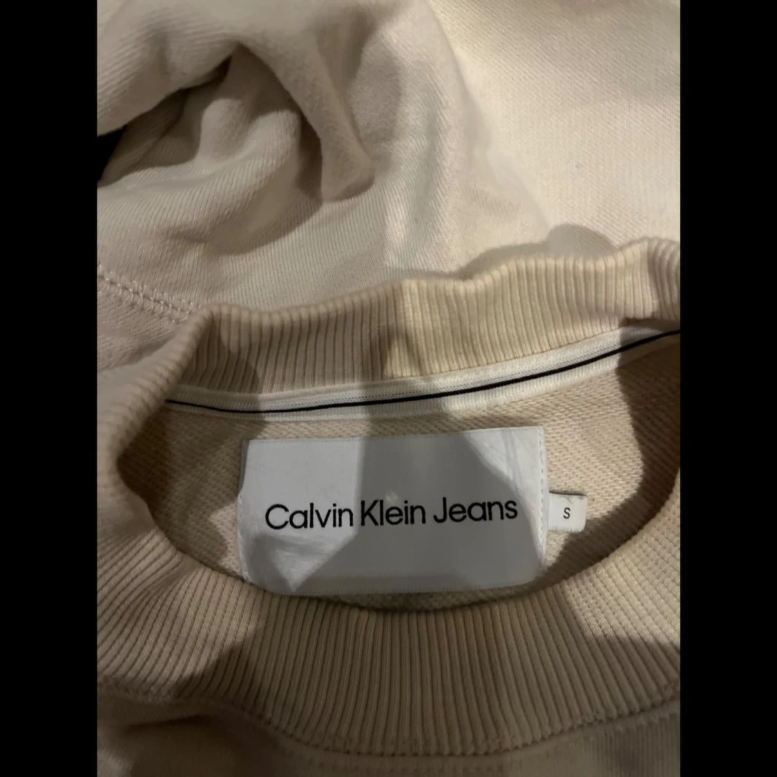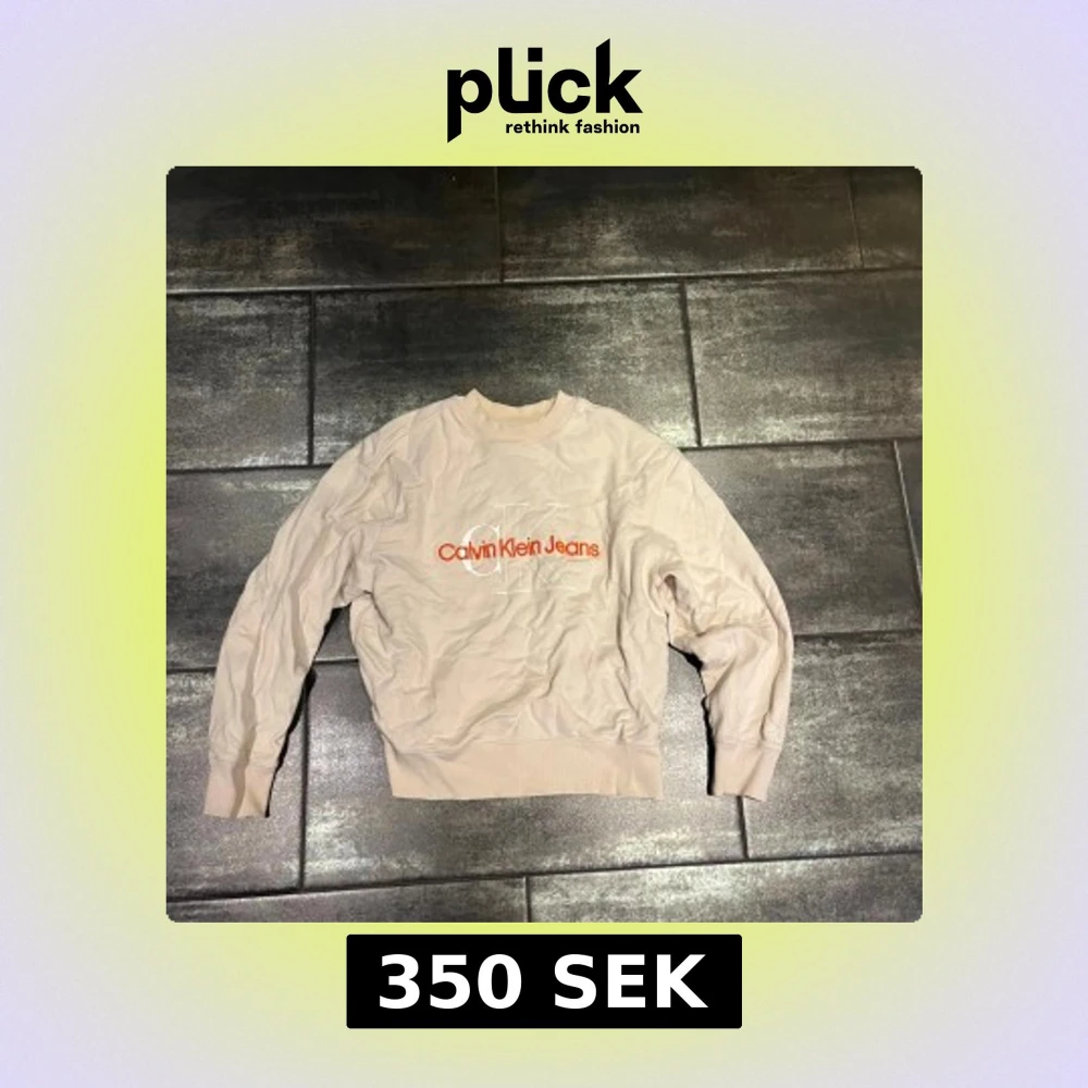 Säljer en stilren beige sweatshirt från Calvin Klein Jeans med logga i orange på framsidan. Jättebra skick och i storlek S. Skriv vid frågor