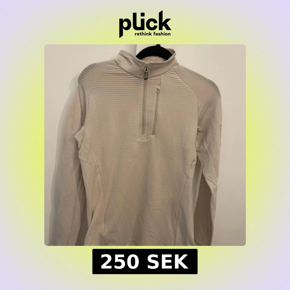 Säljer en beige långärmad tröja från Salomon med halv dragkedja och en bröstficka med dragkedja. Tröjan har diskreta ränder i materialet och hög krage. Perfekt för lager-på-lager och outdoor. , helt ny ären även och har aldrig kommit till användning.