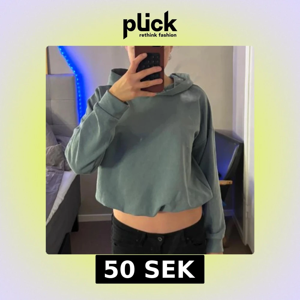 Säljer en ljusgrön croppad hoodie från ETIREL. Tröjan har långa ärmar, huva och dragsko nertill. Perfekt för en avslappnad och trendig stil.