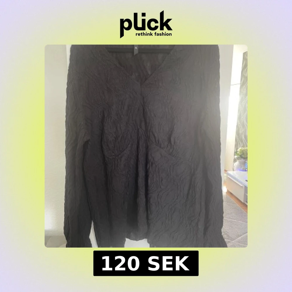 Säljer en svart långärmad blus i storlek XL. Blusen har en snygg strukturerad yta och v-ringning. Perfekt för dig som gillar stilrena plagg med det lilla extra.