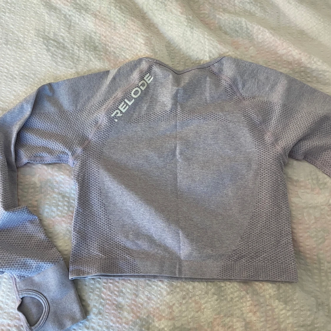 Säljer en ljuslila croppad träningströja från Relode. Tröjan har tumhål vid ärmsluten. Säljer du den inte kommit till användning 😍