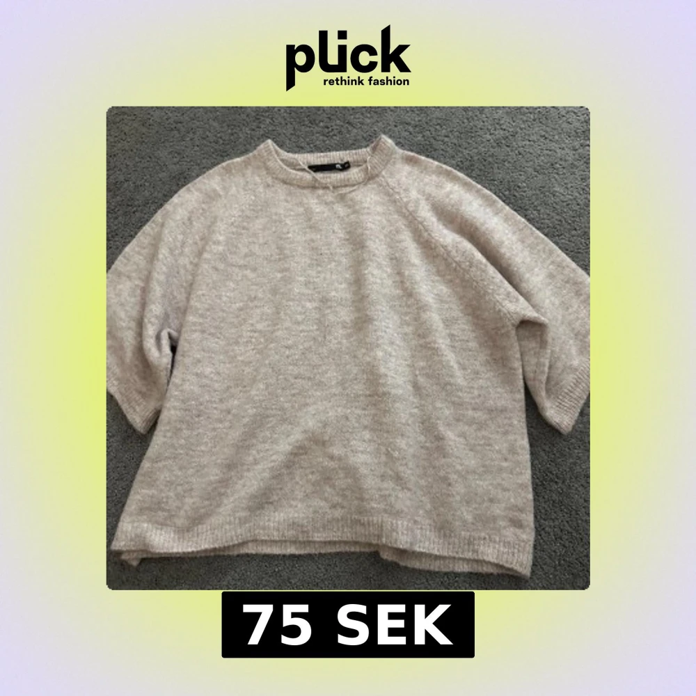 Mysig beige stickad tröja från 157 i storlek XS. Tröjan har en avslappnad passform med trekvartsärmar och ribbade kanter. Perfekt för kyliga dagar!