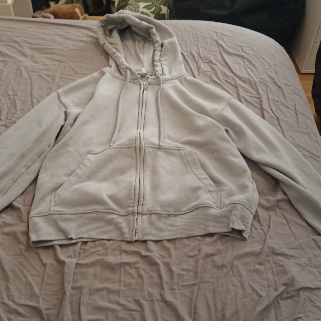 Säljer en grå hoodie från H&M Divided. Den har en dragkedja framtill och en klassisk huva. Perfekt för en avslappnad stil. Hör av dig vid intresse!