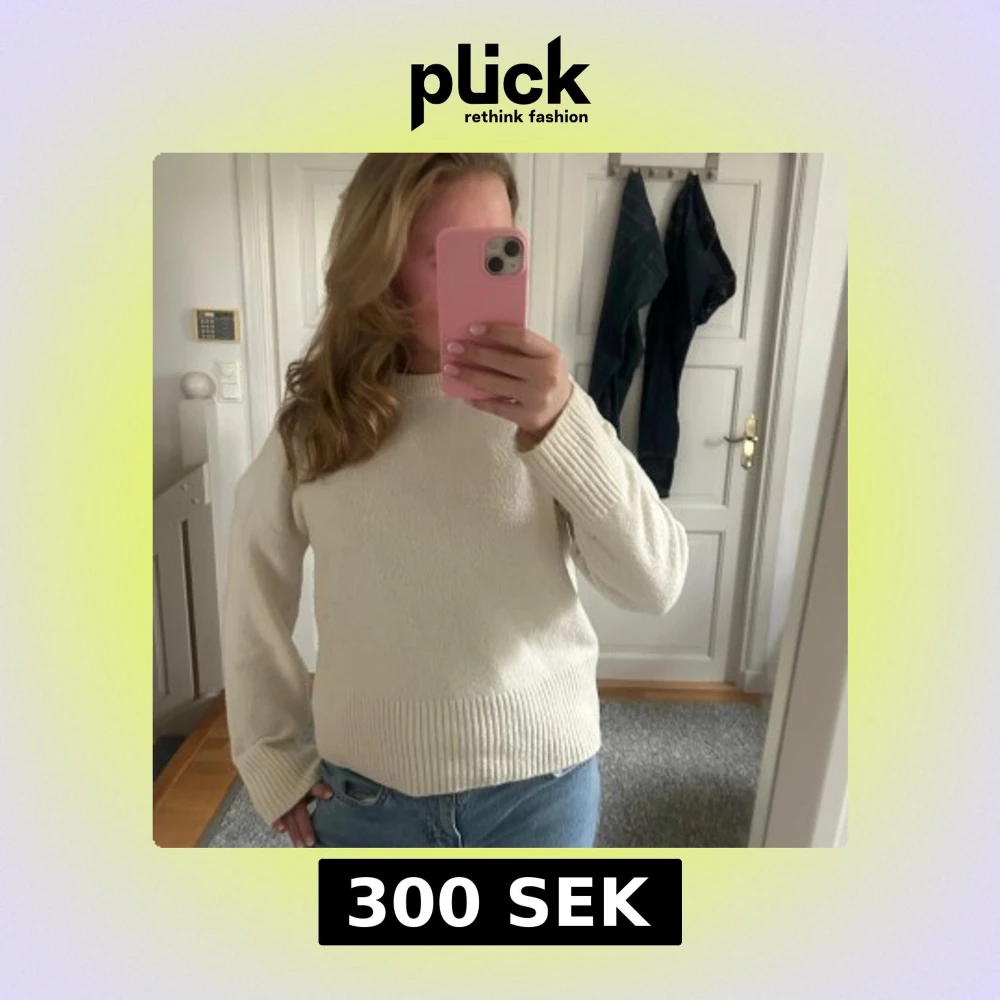 Säljer en stilren vit stickad tröja från &Other Stories Perfekt nu till våren och att matcha med jeans eller kjol. Tröjan passar både XS och S