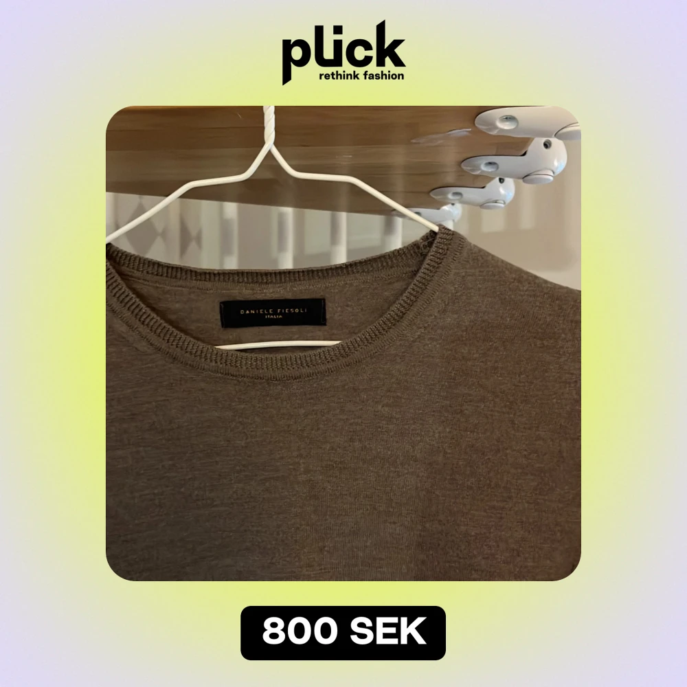 En tröja från Daniele Fiesoli som är 100% merinoull och är i storlekn L men rätt liten i storleken så skulle säga att S-M passar denna.