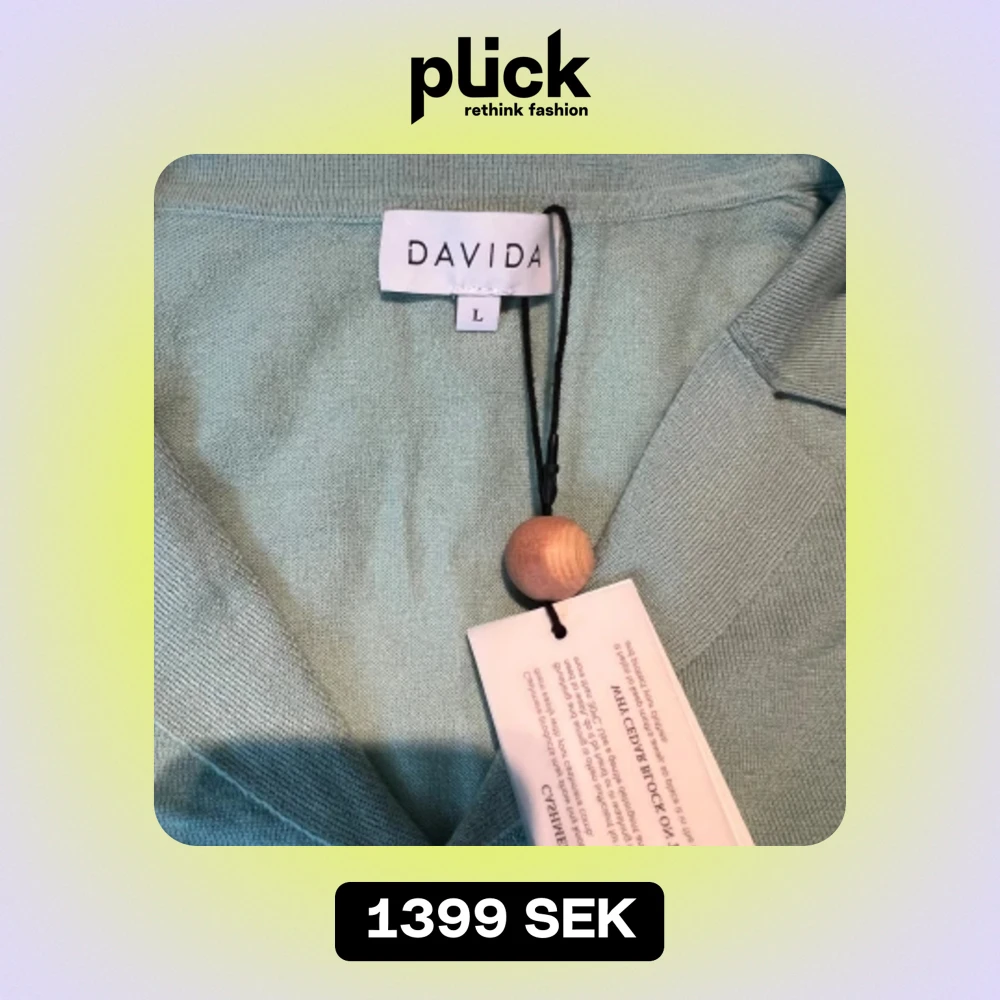 Materialet ser konstigt ut när man fotar så den ser inte ut som på bild 1. En grön cashmere tröja från Davida. Den är i storlek L. Säljer den pågrund av att den är för stor, lappar medföljer. Nypris 2500kr och jag säljer den för 1000kr.