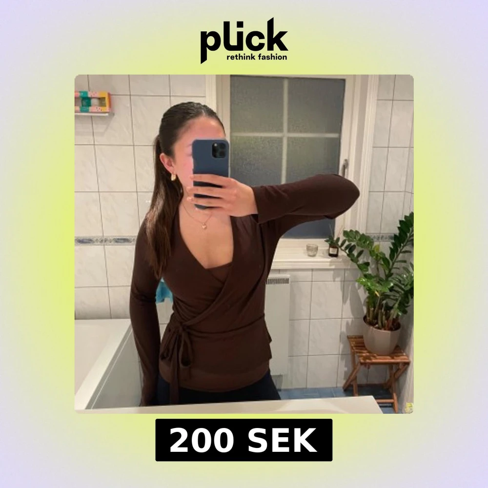 Snygg brun omlottopp med knytning i midjan. Toppen har långa ärmar och en v-ringad design som ger en elegant look. Perfekt för både vardag och speciella tillfällen. Perfekt för pilates och lin exercere toppen!