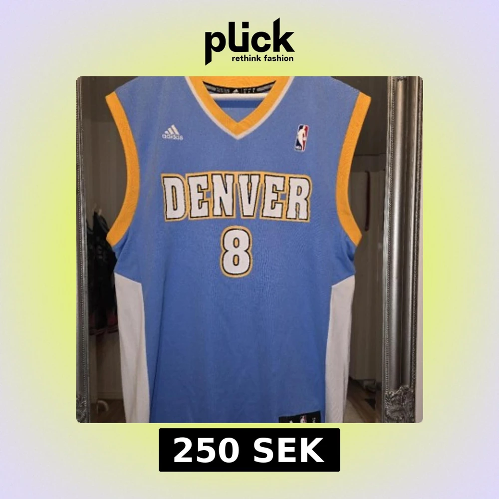 Äkta så klart, M/L storlek. Säljer ett blått Denver Nuggets basketlinne från Adidas med Gallinari och nummer 8 på ryggen. Linnet har gula och vita detaljer, ärmlös design och officiella NBA-loggor. Perfekt för basketfans som vill sticka ut på planen eller på läktaren.