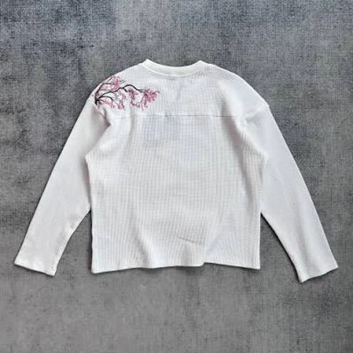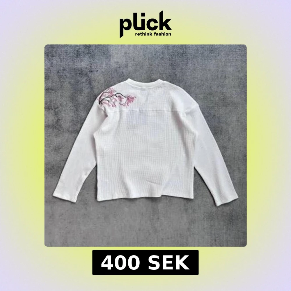 Vit långärmad tröja från Derschutze ett snyggt rosa broderi av blommor på axeln baksida . Tröjan har en rak passform och är tillverkad i ett mjukt, ribbat material som känns skönt mot huden. Den har fortfarande tagg kvar. Storleken är XL men skulle säga att den passar på L också.