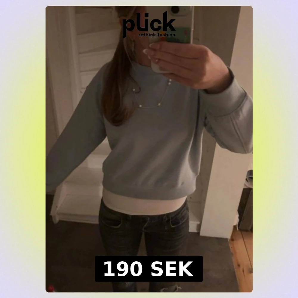 As snygg ljusblå kortare sweatshirt! Perfekt för att ha ett vitt linne under så outfiten får en extra detalj! Kolla gärna in mina andra annonser