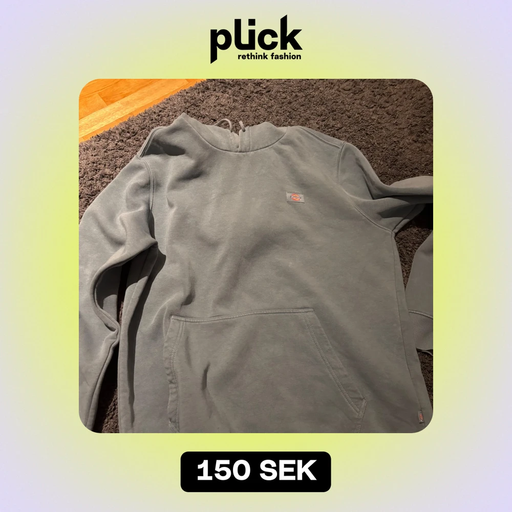 Säljer en grå hoodie från Dickies i bra skick. Den har en klassisk design med en stor ficka framtill och en liten logga på bröstet. Perfekt för en avslappnad stil och passar till alla årstider. Skön och enkel att matcha med andra plagg.