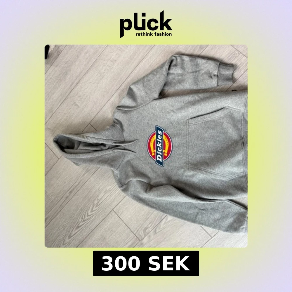 Säljer en grå hoodie från Dickies i storlek small. Tröjan har stor färgglad Dickies-logga på bröstet, huva med dragsko och en klassisk magficka. Tillverkad i mjuk bomullsblandning, perfekt för chill dagar eller streetwear-stil.