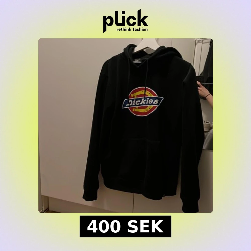 Svart hoodie från Dickies i storlek small med Dickies-logga på bröstet och broderad logga på ärmen.