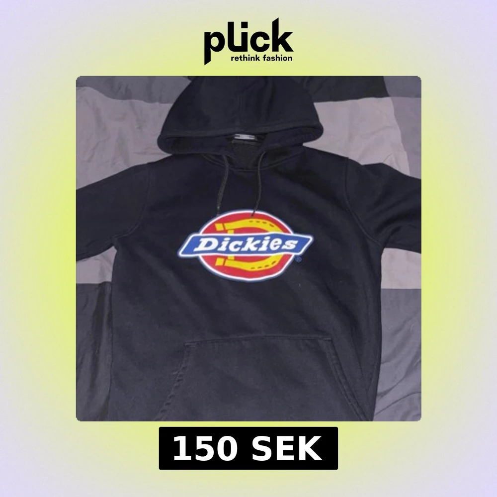 Säljer en svart hoodie från Dickies med stor färgglad logga på bröstet. Klassisk känguruficka framtill och justerbar huva med snören. Perfekt för en avslappnad och cool stil.