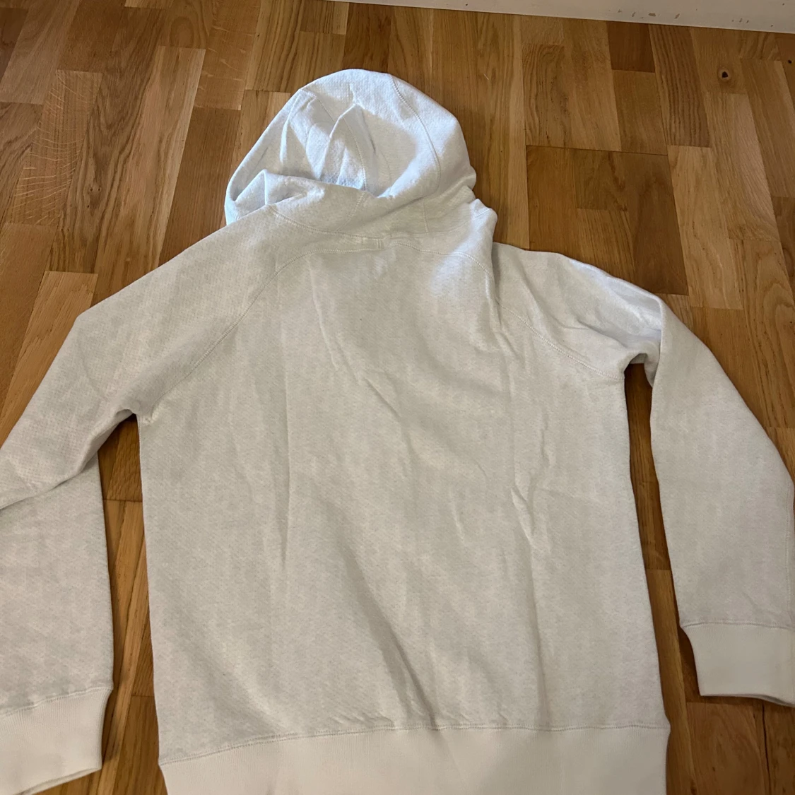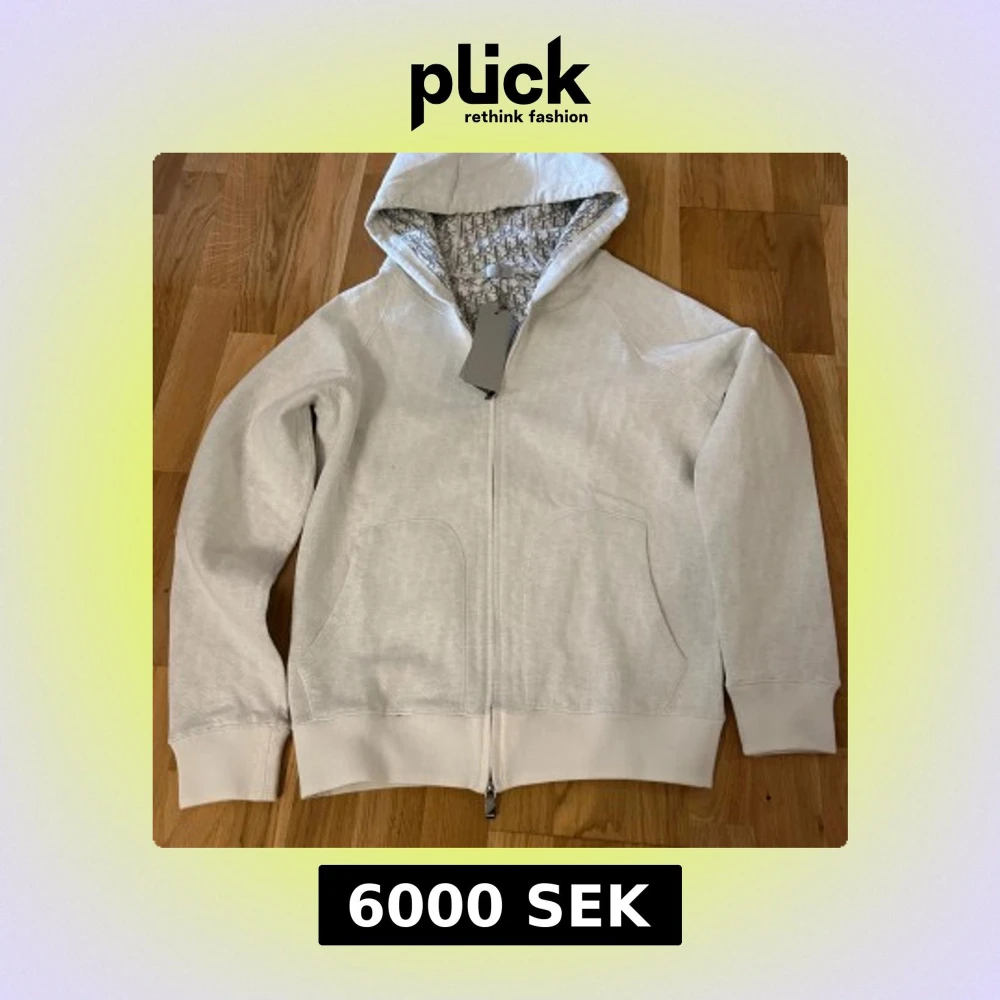 Snygg vit hoodie från Dior med hel dragkedja och huva. Insidan är fodrad med Diors ikoniska monogrammönster i grått. Tröjan har två stora fickor framtill och ribbade muddar. Perfekt för dig som vill ha en exklusiv och stilren look.