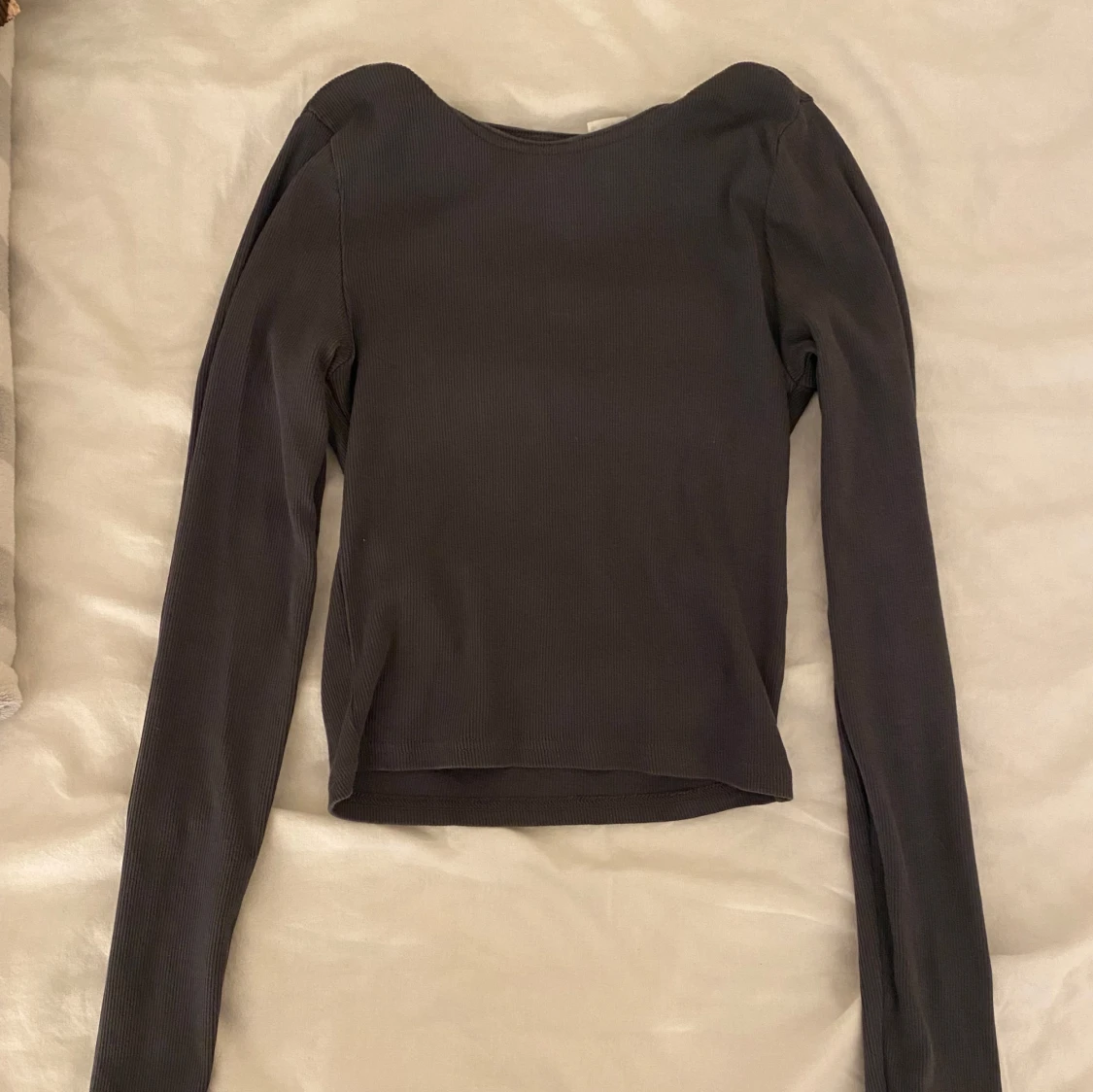 Säljer en mörkgrå långärmad topp från H&M Divided i storlek XXS. Toppen är ribbad och har en tight passform, perfekt att styla till olika outfits. Enkel och stilren design som passar till mycket.