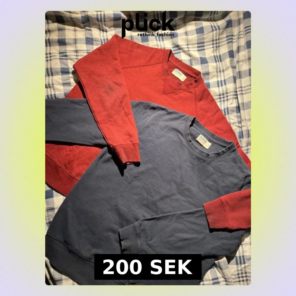 Två stilrena sweatshirts från dobber, en i röd och en i mörkblå färg. Båda har rund hals och långa ärmar med ribbade muddar. Perfekt för dig som gillar enkel och clean stil. Materialet är mjuk bomull som känns skönt mot huden.