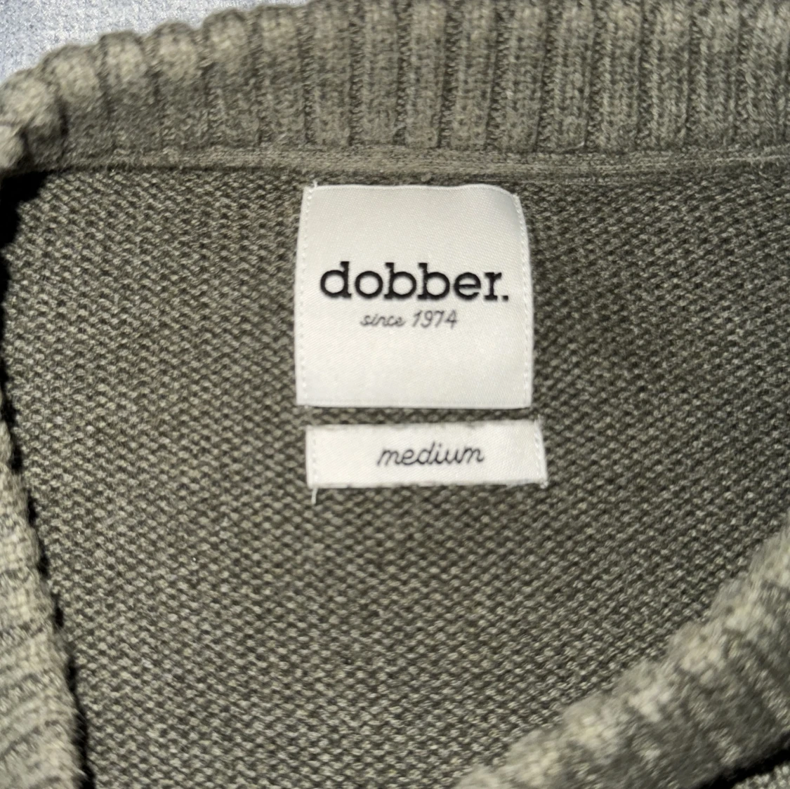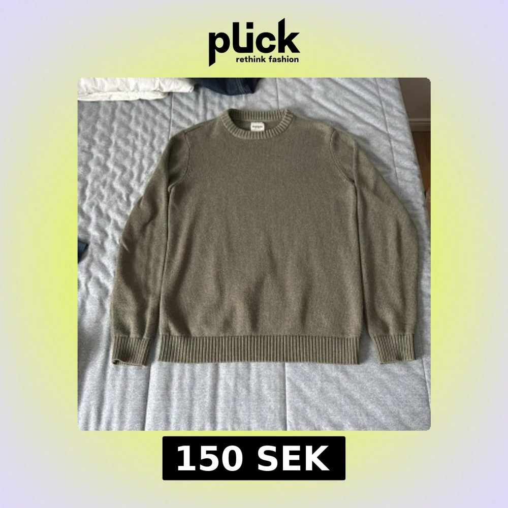 Säljer en olivgrön stickad tröja från Dobber i storlek medium. Tröjan har rund halsringning, ribbade muddar och nederkant. Perfekt för dig som gillar en enkel och stilren look med en touch av street.