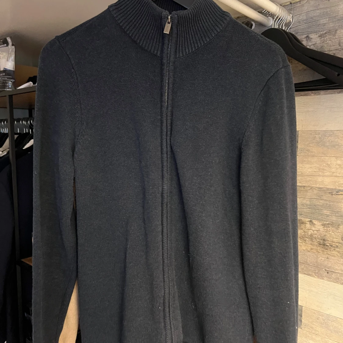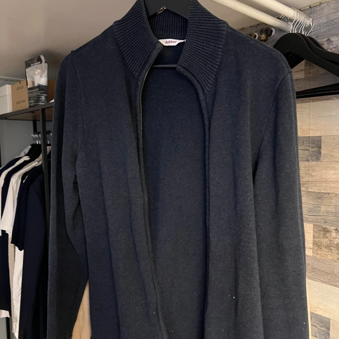 Mörkgrå stickad kofta från Dobber med hög krage. Tröjan är lite tjockare och perfekt nu till vintern. Den är i storlek M