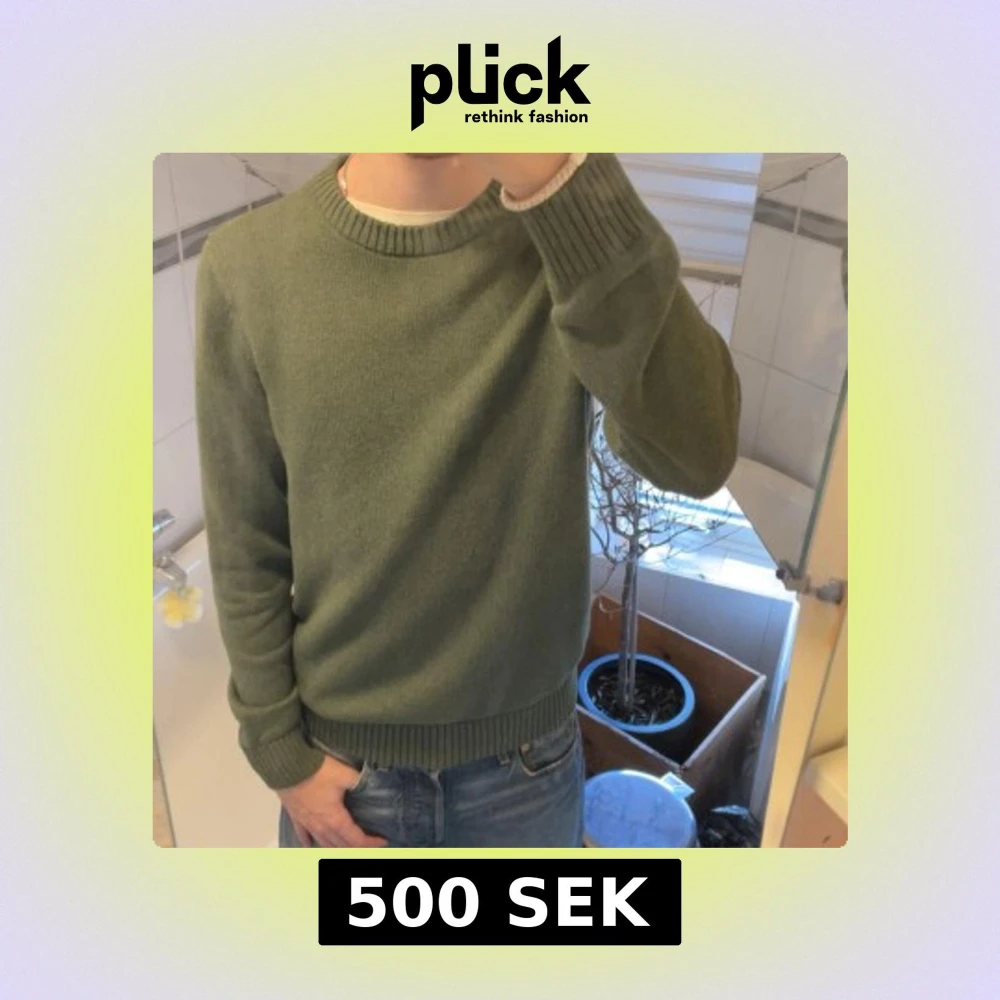 Säljer en stilren grön stickad tröja från Dobber med ribbade muddar vid ärmslut och nederkant. Perfekt för lite kyligare sommardagar och passar bra till jeans. Tröjan har en klassisk rund hals och långa ärmar.