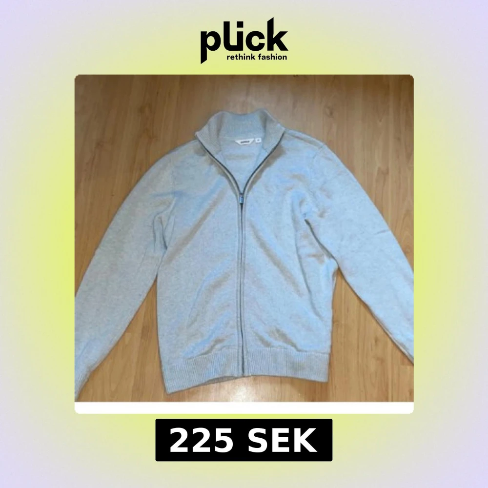 Säljer en stilren ljusgrå stickad kofta från Dobber i storlek M. Koftan har hel dragkedja framtill, ribbade muddar och hög krage. Perfekt att slänga på sig över en t-shirt för en clean look.
