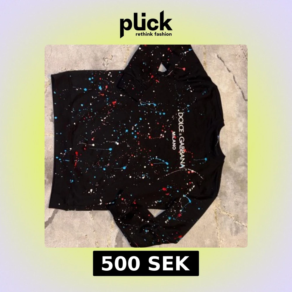 Svart sweatshirt från Dolce & Gabbana med coolt färgstänksmönster i rött, blått och vitt. Tröjan har rund hals, långa ärmar och tryckt logga framtill. Perfekt för dig som vill sticka ut med en unik och trendig look