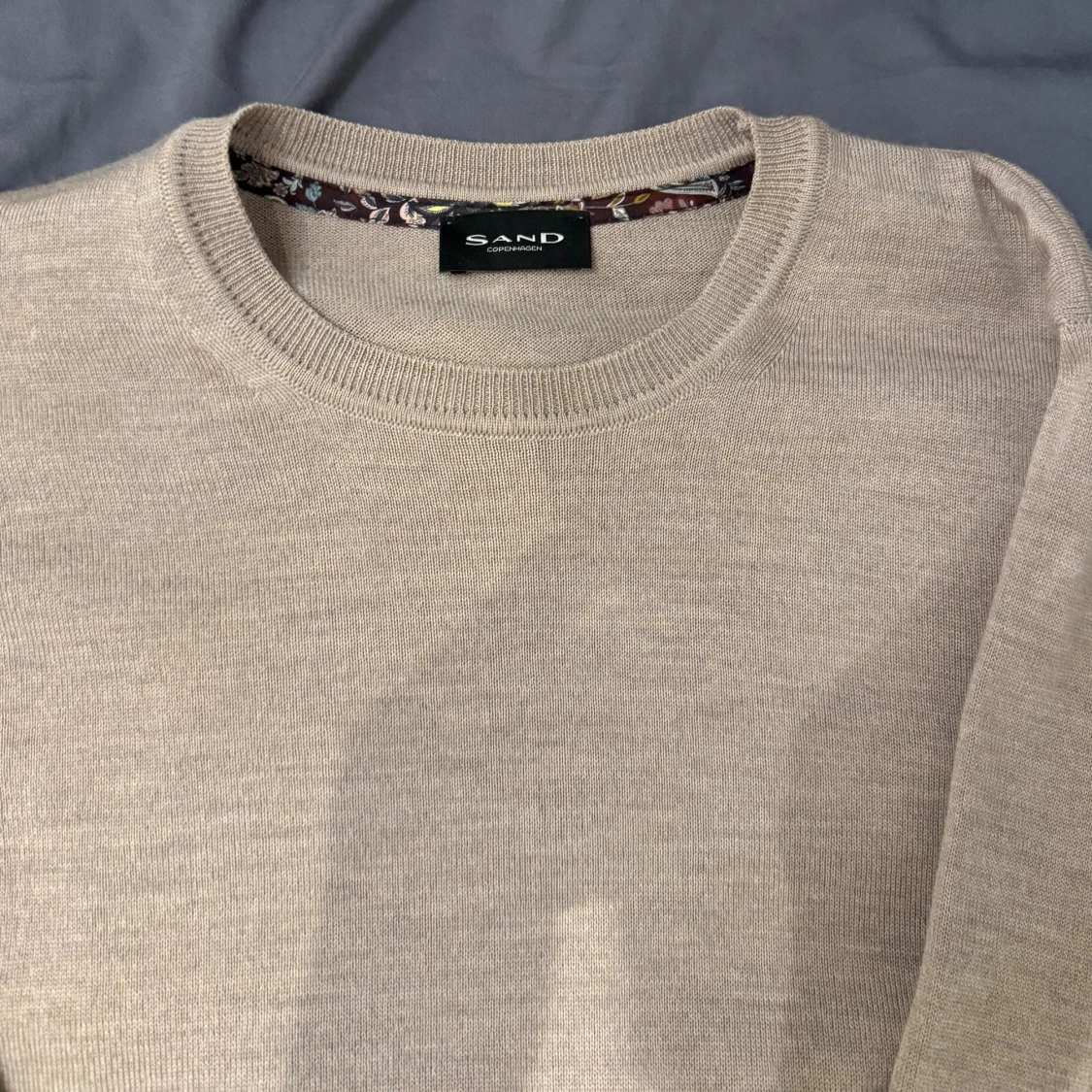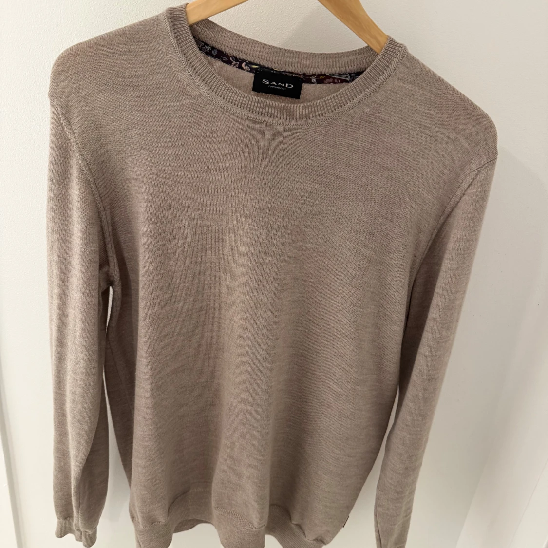 Säljer en stilren beige tröja från Sand i 100% merinoull. Storlek M och skick 9/10. Nypris ligger på 1600kr mittpris 699kr. Bara att skriva vid funderingar.