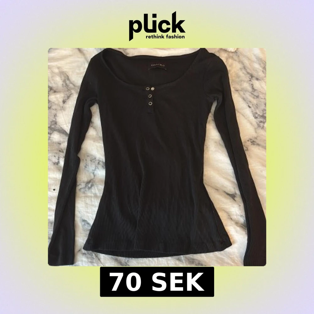 Svart långärmad topp från Anna Field med ribbad struktur och rundad halsringning. Köpt ifrån Plick tror jag och har knappt använt den