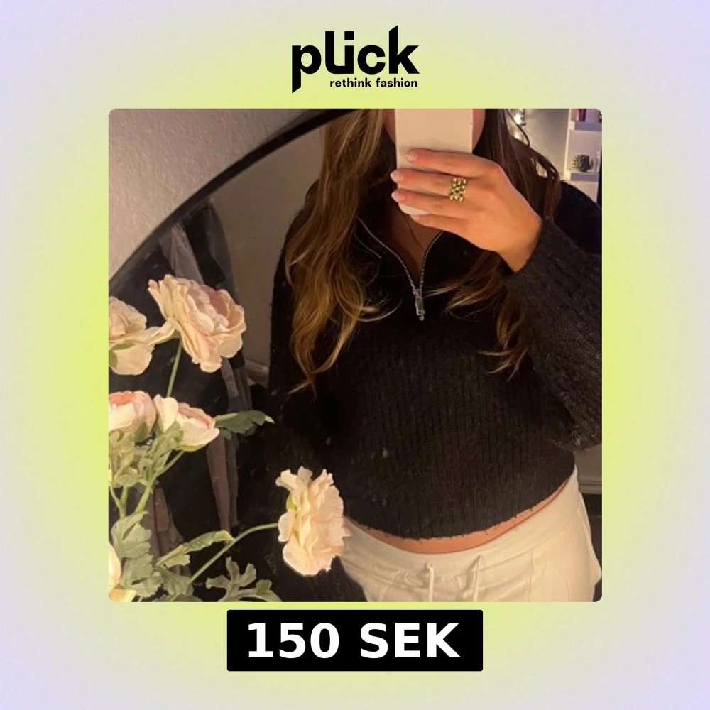 Säljer en svart stickad tröja med dragkedja framtill. Jättemysig tröja i bra skick! 💌passar M/ XS storleksmässigt. Säljer för att den är lite kort på mig.