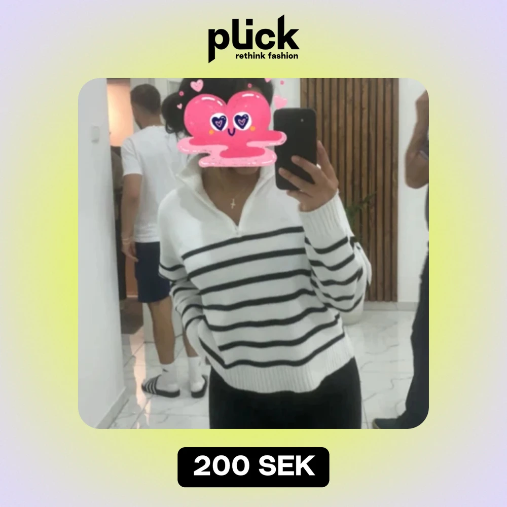 Säljer mig randiga tröja med kedja vid kragen! Den är i nyskick och nypris är 239kr. Har bytt klädstil. Något du undrar över? Välkommen att diskutera🤍🖤