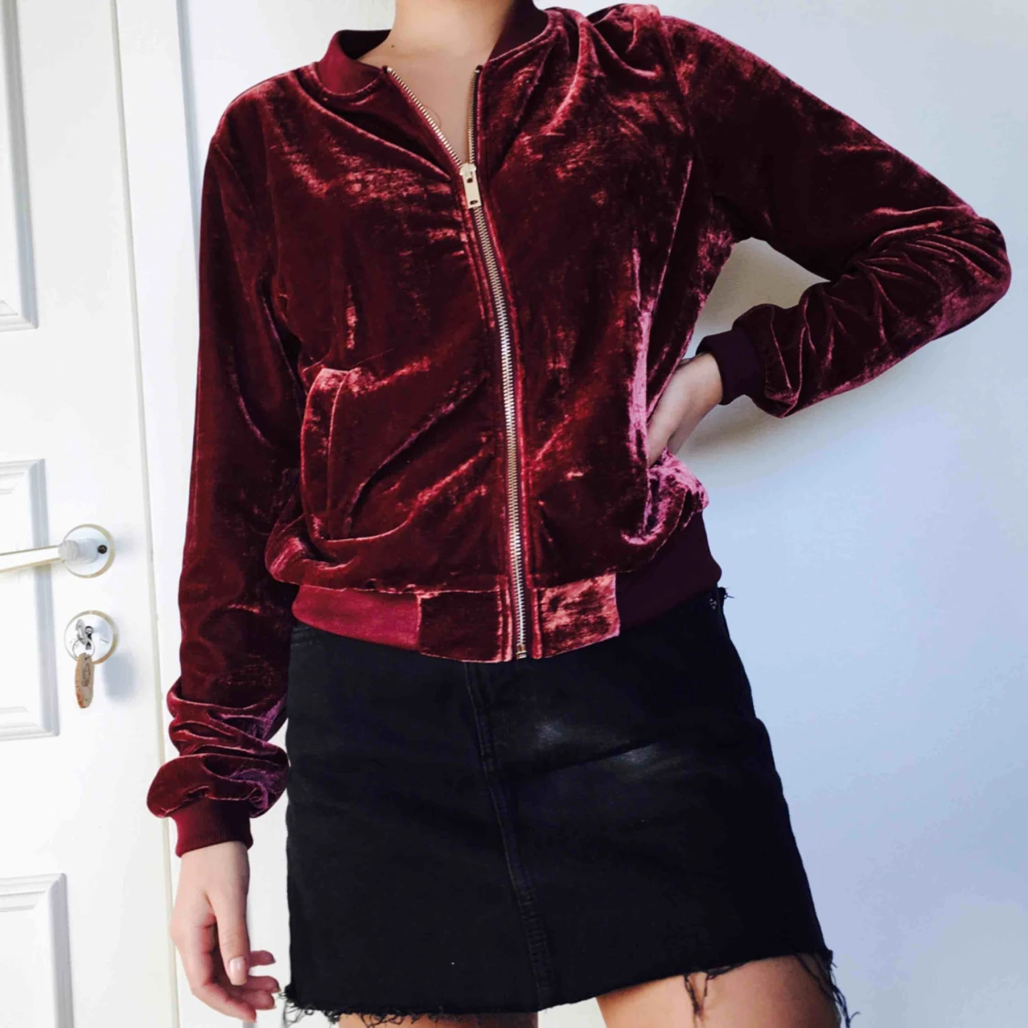 Vinröd superfin kofta i plysch med gulddetaljer. Mycket gott skick använd 1 gång. Frakt 20kr