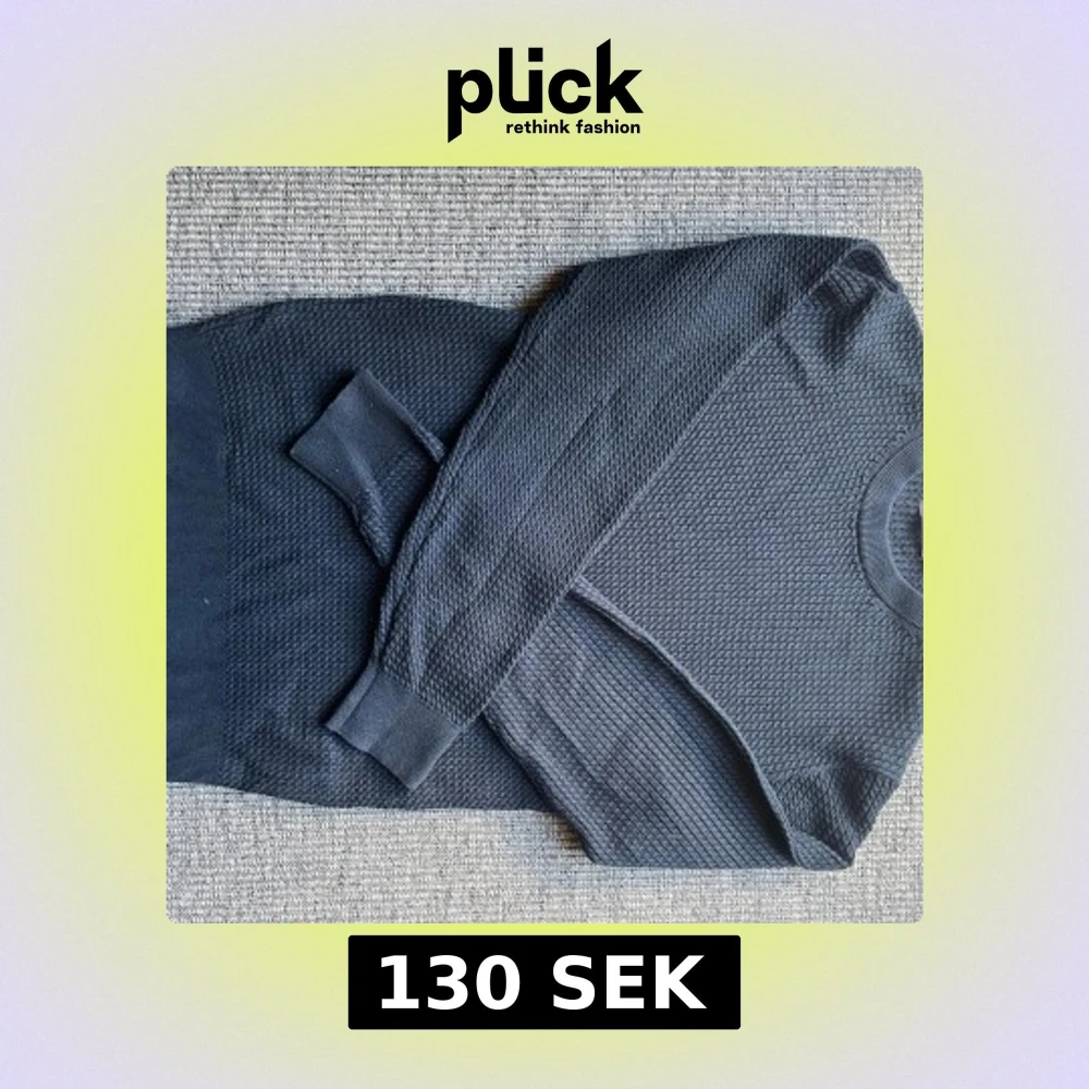 Mörkblå stickad tröja från Dressmann i storlek S. Tröjan har ett diskret strukturerat mönster, rund halsringning och ribbade muddar vid ärmslut och nederkant. Perfekt för lager-på-lager under kyliga dagar.