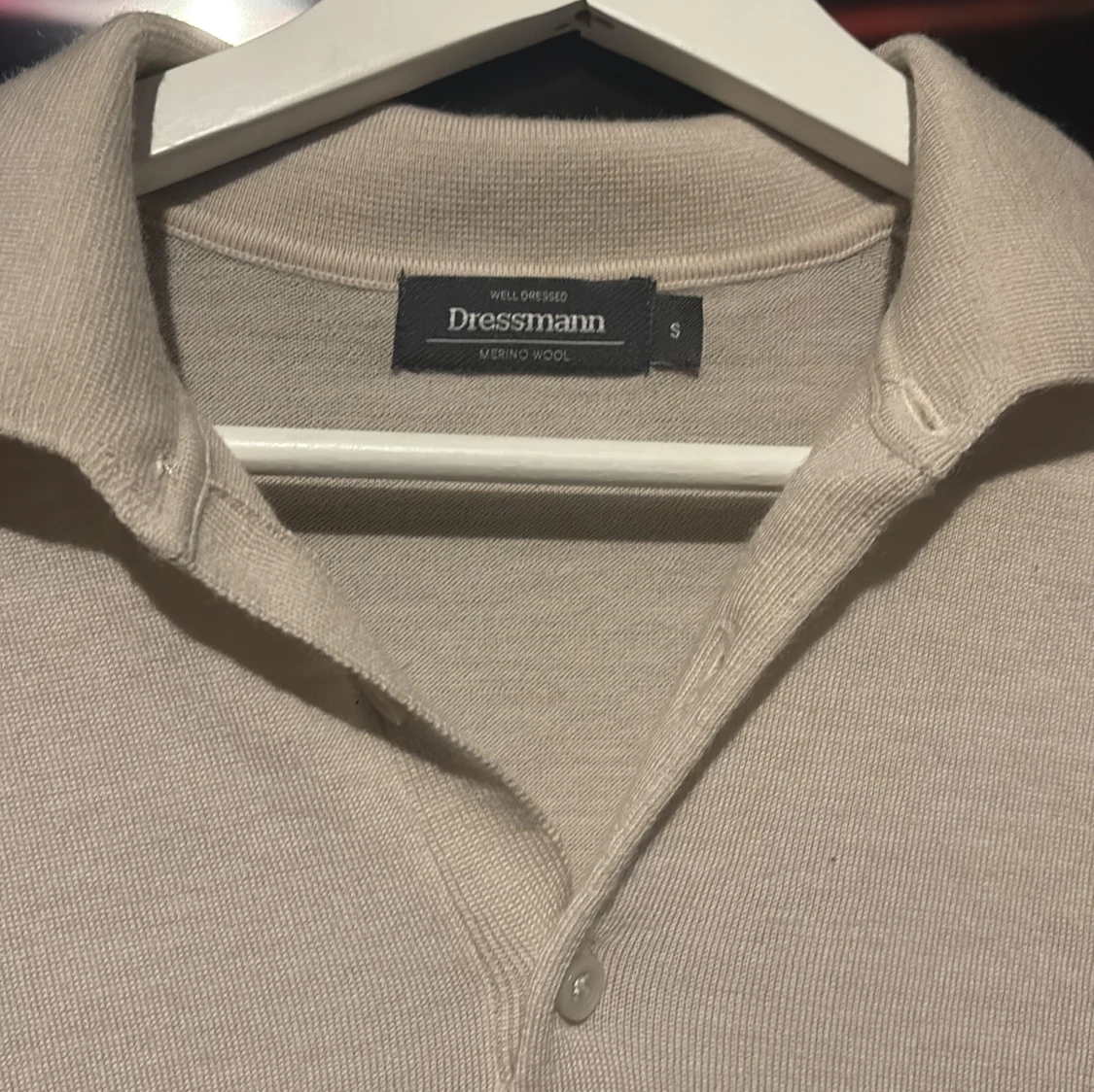 Snygg beige pikétröja från Dressmann i mjuk merinoull. Tröjan har klassisk krage, knäppning framtill och långa ärmar. Perfekt för dig som gillar stilrena och bekväma plagg med en clean look. Otroligt skick