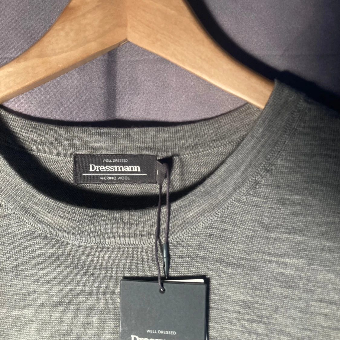 Sjukt skön och snygg tröja i 100% merinoull från Dressmann. Storlek L så passar alla mellan 180-190 cm ish, true to size alltså. Tröjan är helt ny med lapp kvar, nypris 599🔥