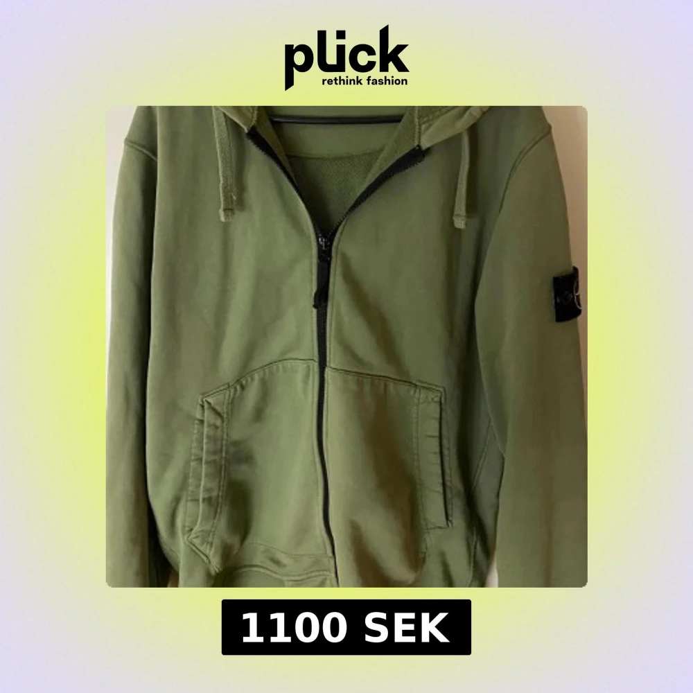Säljer en snygg grön hoodie från Stone Island med dragkedja och klassisk logga på ärmen. Perfekt för en avslappnad stil. Den har en bekväm passform och är tillverkad i ett mjukt material. Den har en liten oljefläck och Hål (Se bild 4-5) vid fler frågor tveka inte på att höra av dig. Mvh Ludde
