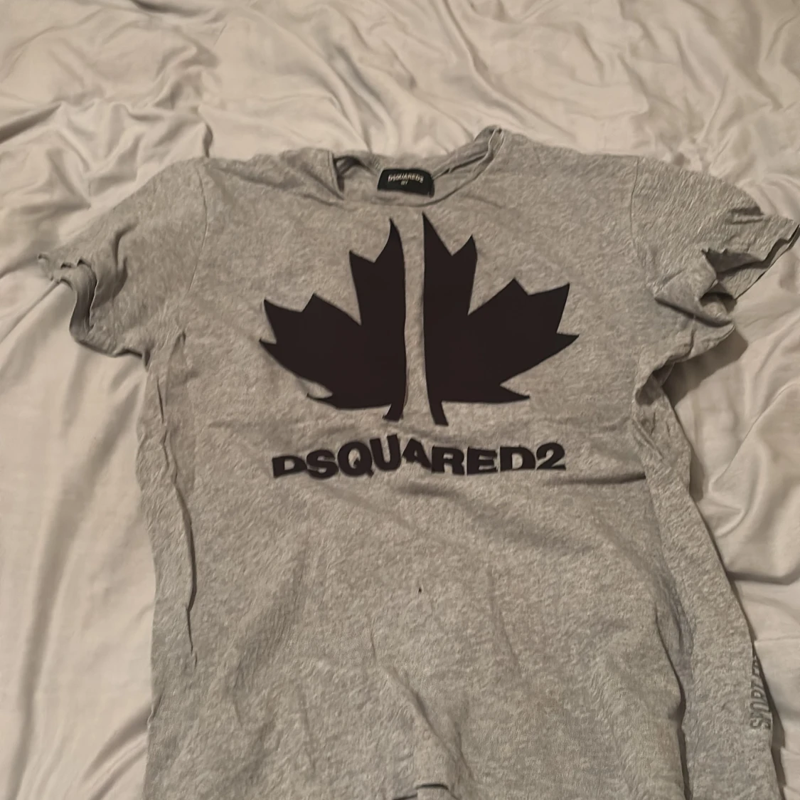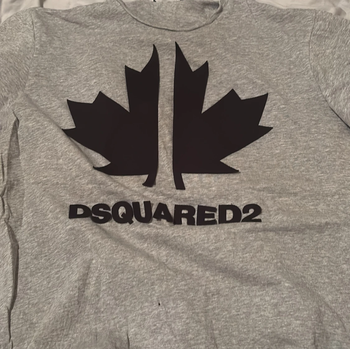 Snygg grå t-shirt från Dsquared2 med stort svart lönnblads-tryck och logga på bröstet. Klassisk rund hals och korta ärmar. Perfekt för dig som gillar streetwear och vill sticka ut med ett coolt designerplagg.