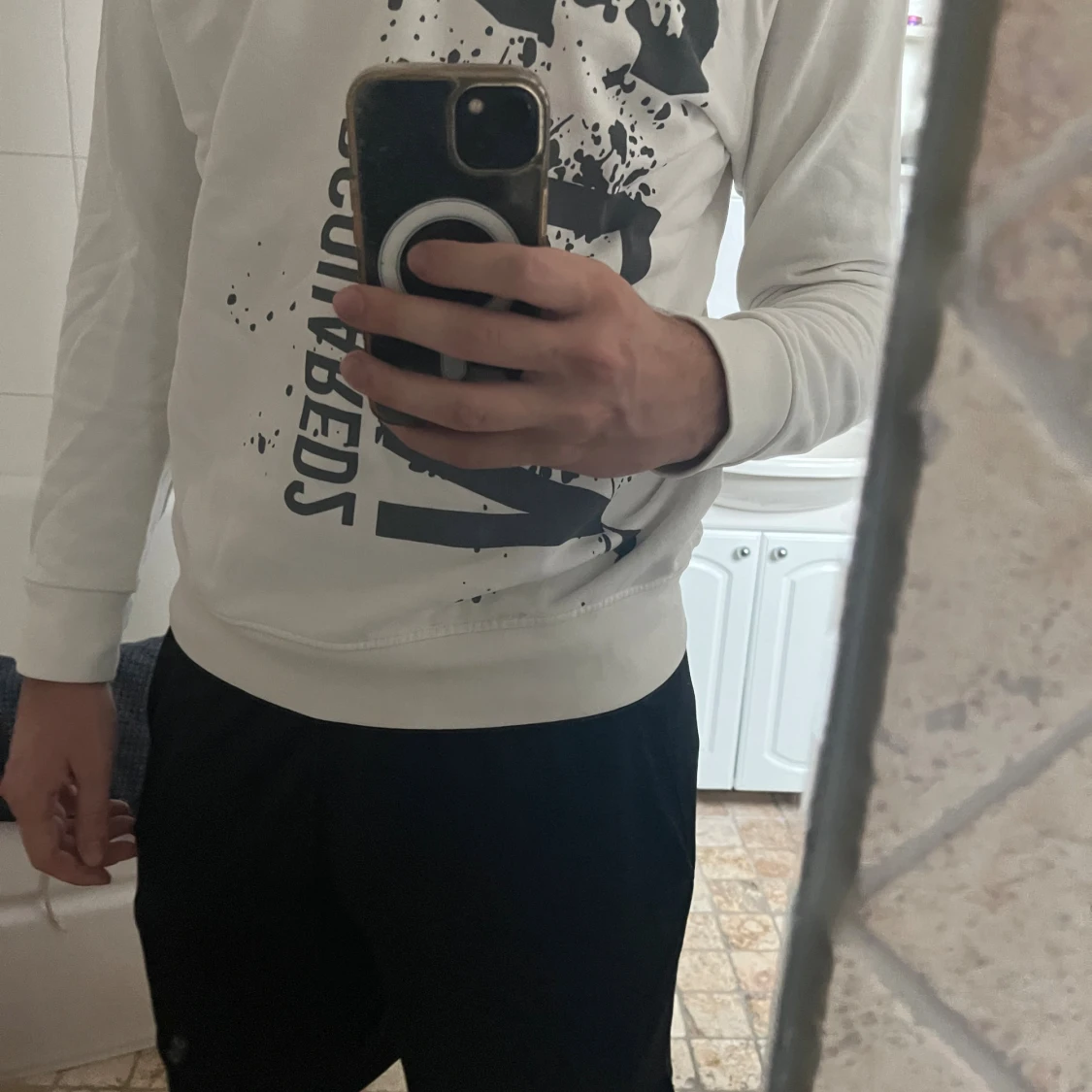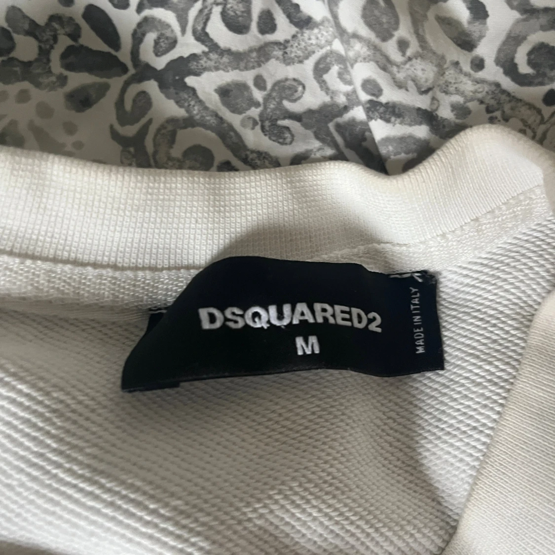 Vit sweatshirt från Dsquared2 med stor svart 'ICON'-print och coolt splattermönster framtill. Tröjan har rund hals, långa ärmar och en relaxed passform. Perfekt för dig som gillar streetstyle och vill sticka ut med en statement-piece.