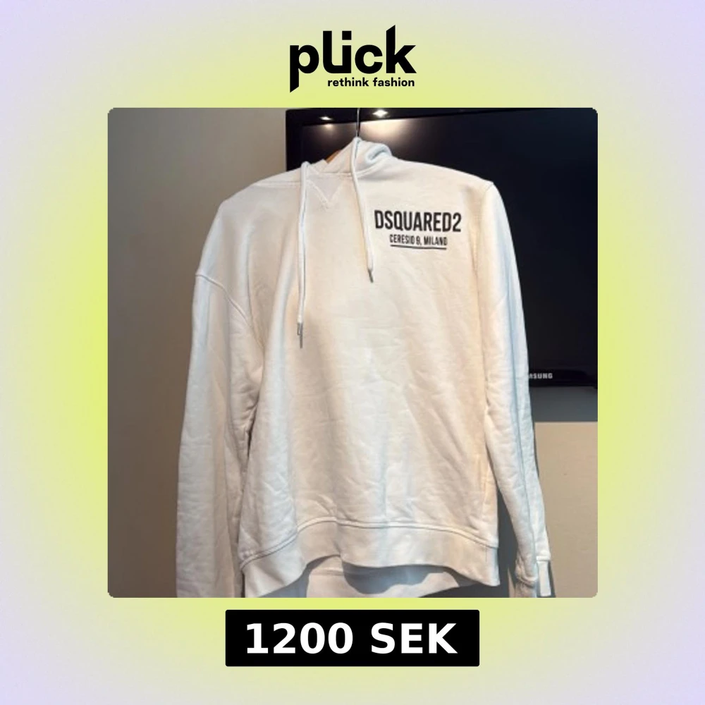 Säljer en vit hoodie från Dsquared2 med svart tryck på bröstet och snörning i huvan. Klassisk passform med långa ärmar och ribbade muddar. Perfekt för dig som gillar stilrena och exklusiva plagg.